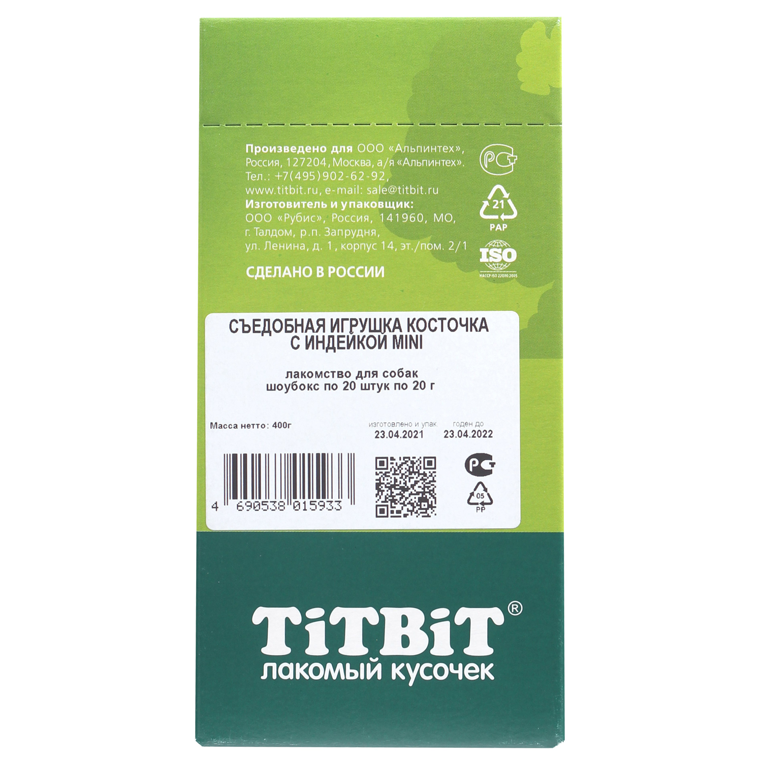 Лакомство TiTBiT Съедобная игрушка косточка с индейкой Mini для собак 20 г