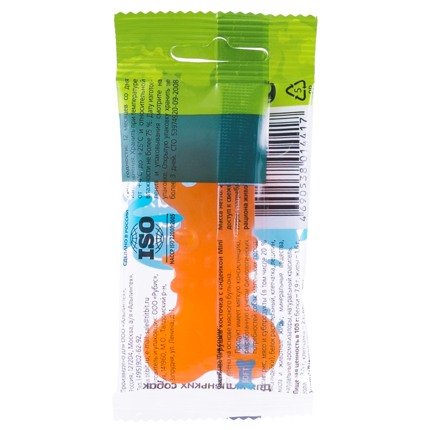 Съедобная игрушка косточка с индейкой Mini изготовлена на основе мясного бульона. Продукт имеет мягкую консистенцию, разработанную с учетом физиологических потребностей собак маленьких пород.
