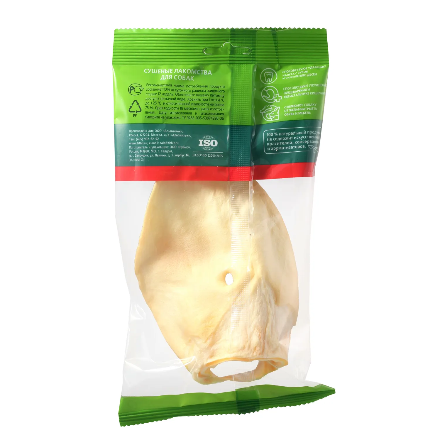 Лакомство TiTBiT Ухо телячье большое для собак 27 г