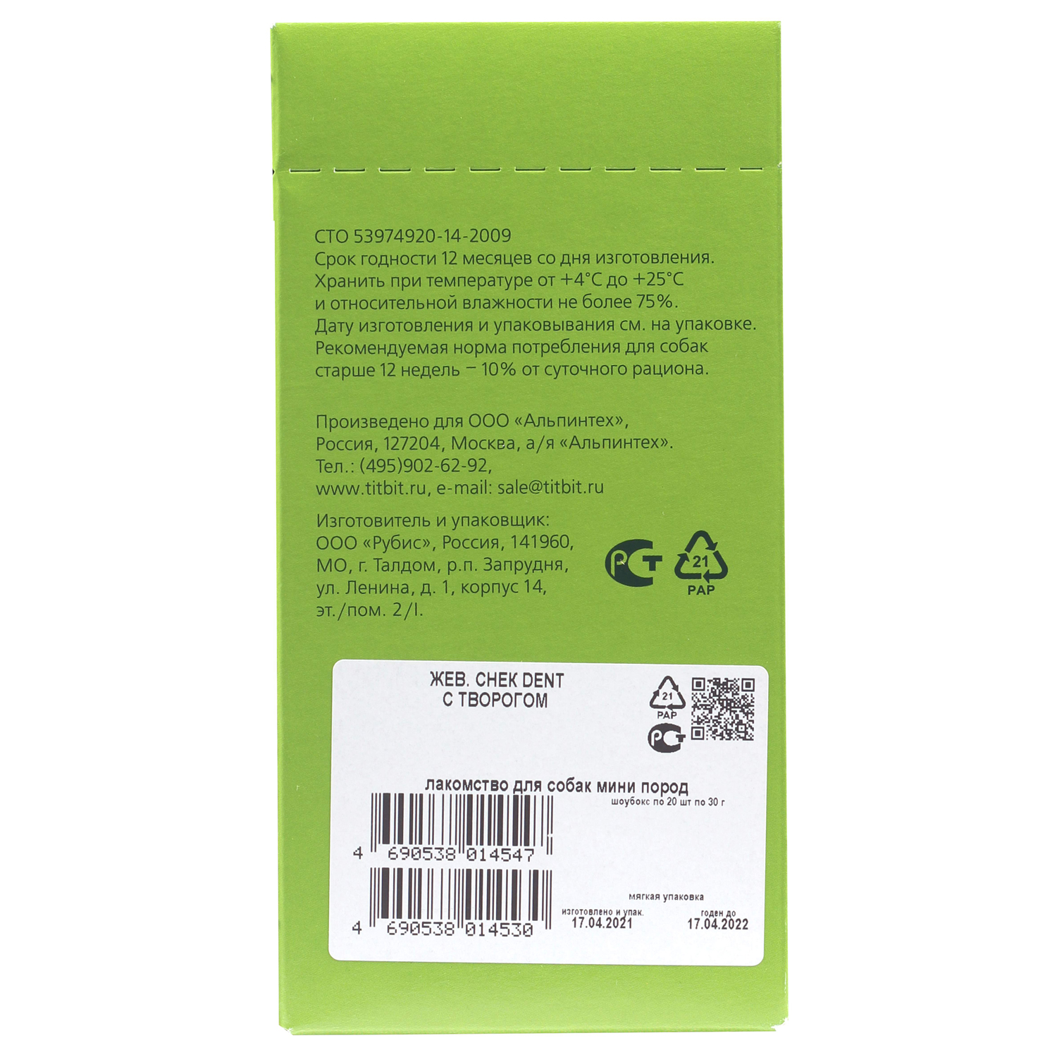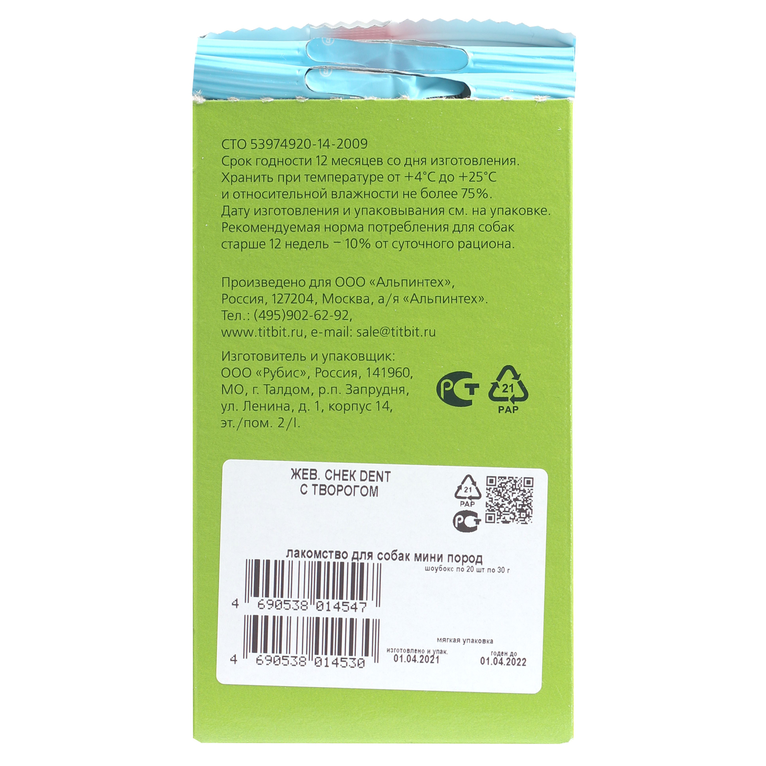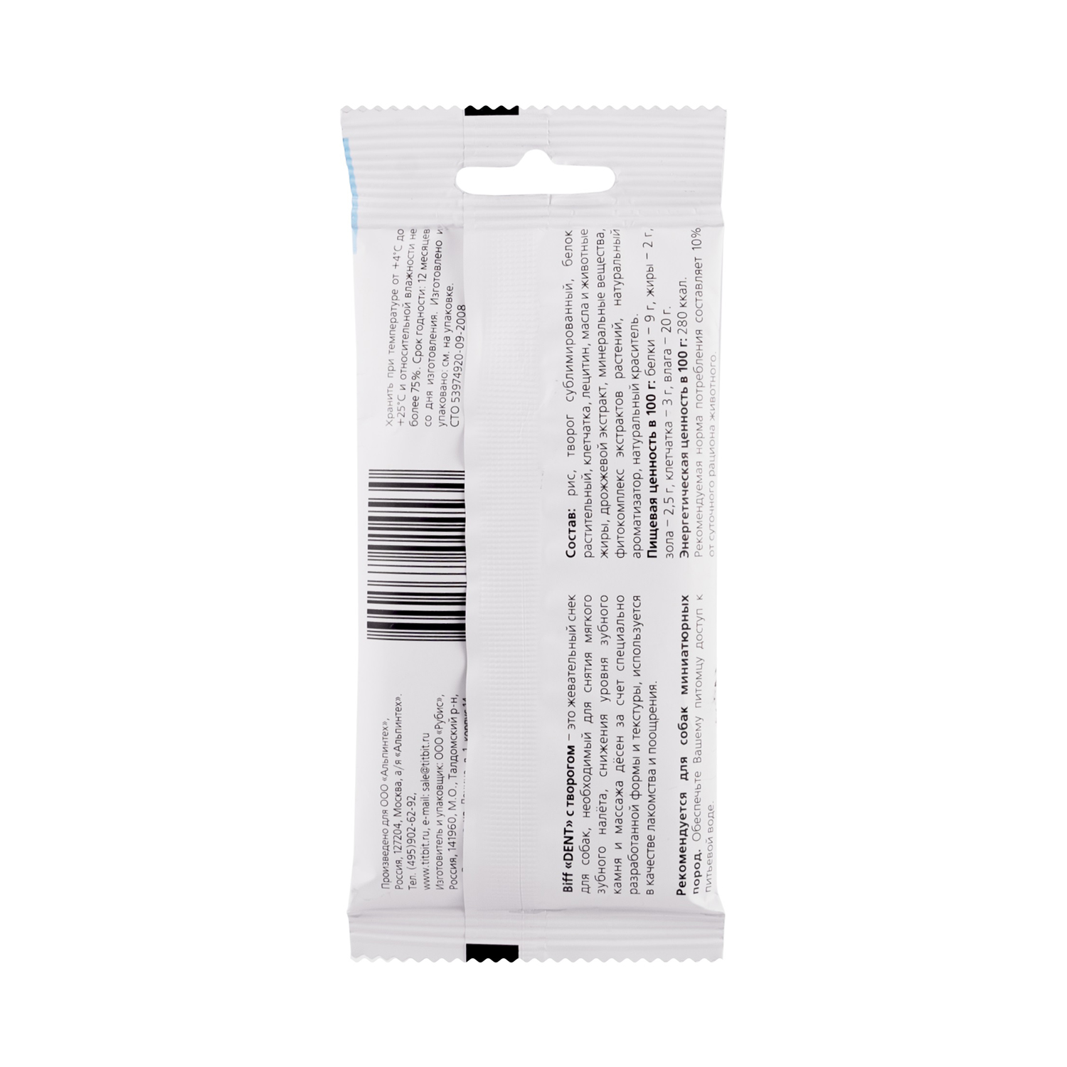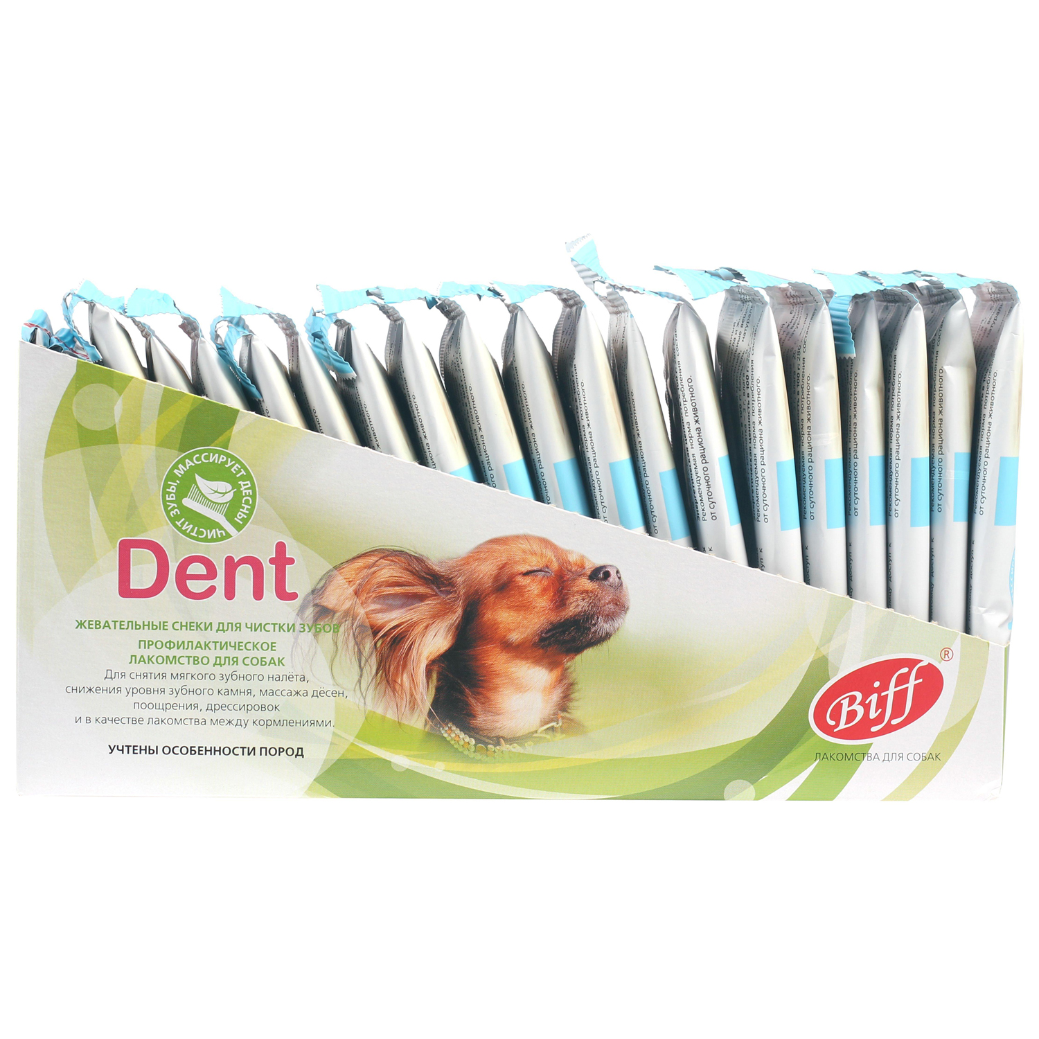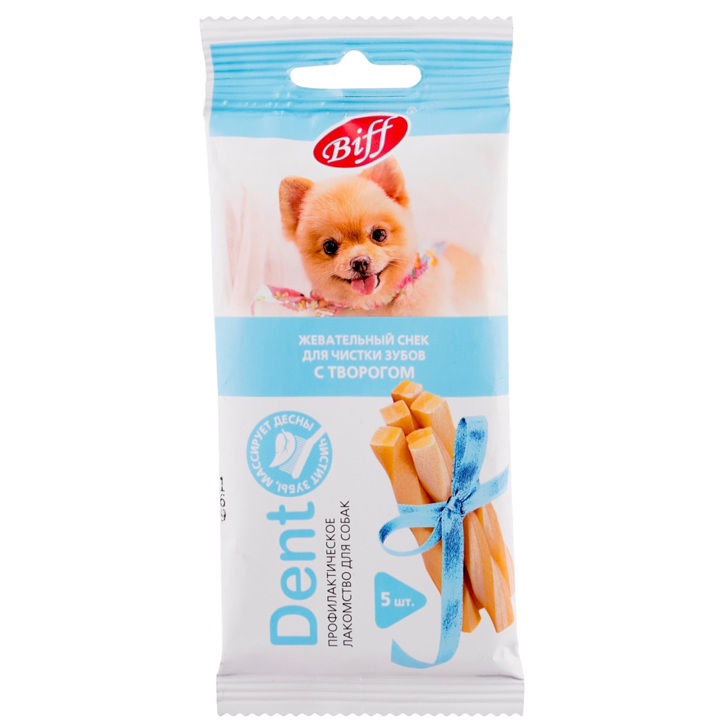Biff «DENT» с творогом – это жевательный снек для собак, необходимый для снятия мягкого зубного налёта, снижения уровня зубного камня и массажа дёсен за счет специально разработанной формы и текстуры, используется в качестве лакомства и поощрения. Рекомендуется для собак миниатюрных пород.