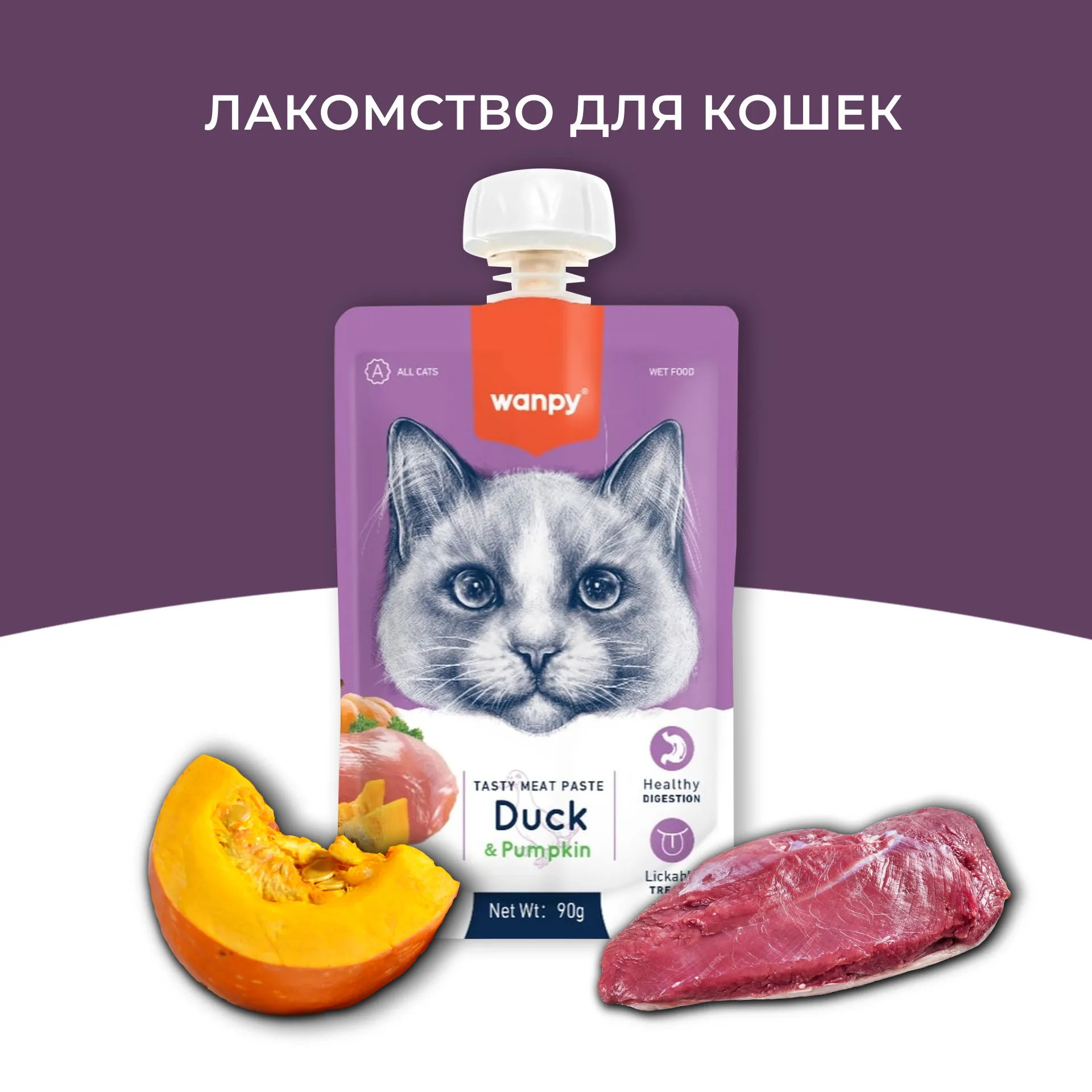 Wanpy Cat Лакомство для кошек Мясной мусс из утки и тыквы 90 г