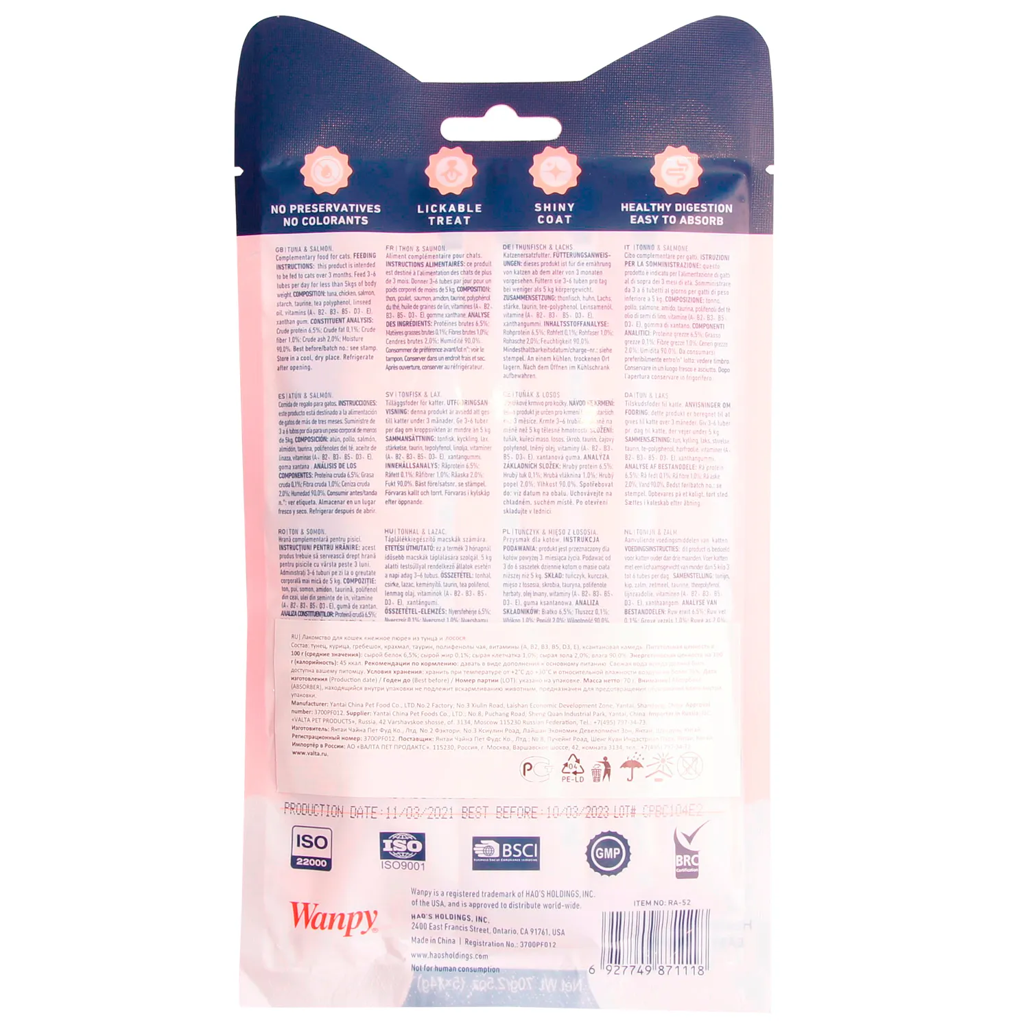 Wanpy Cat Лакомство для кошек "нежное пюре" из тунца и лосося - это уникальное лакомство, которое не только порадует вашего питомца своим изысканным вкусом, но и обеспечит его необходимыми витаминами и минералами.