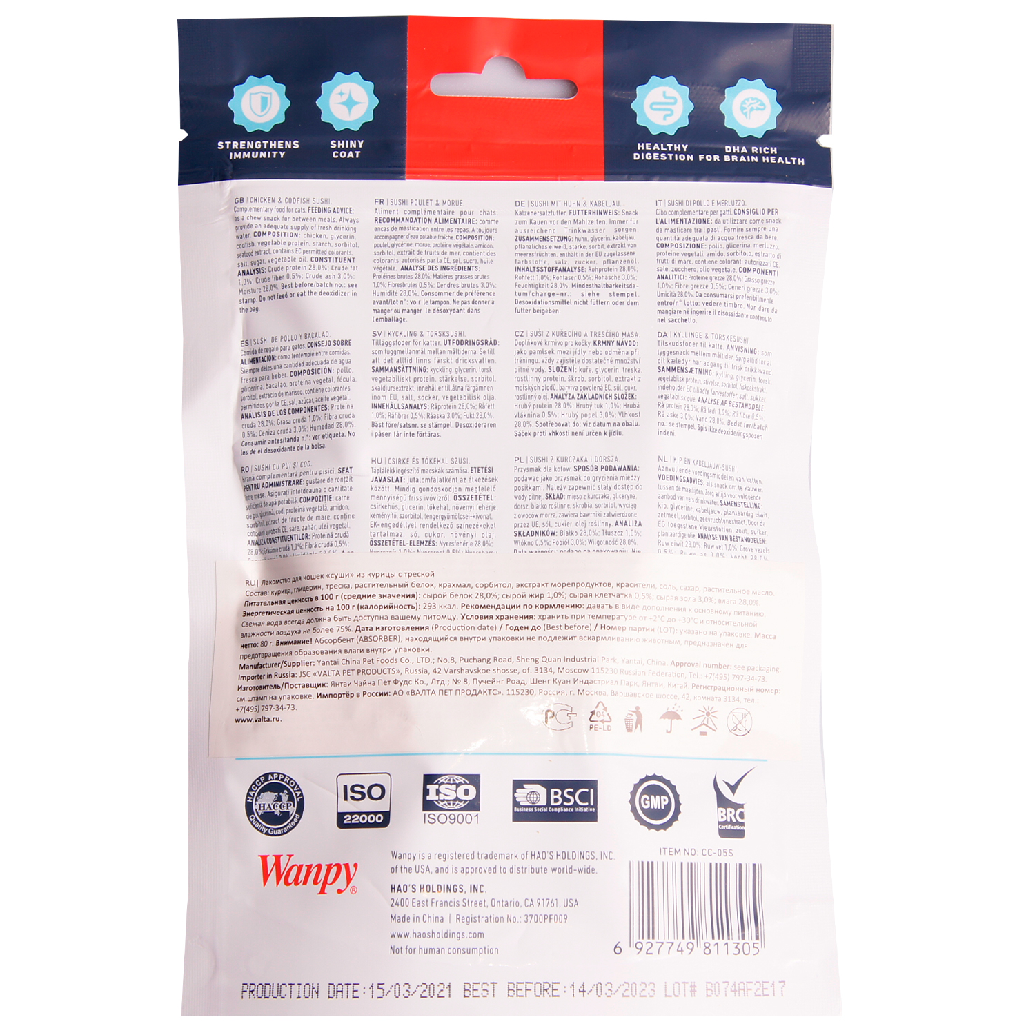 Wanpy Лакомство Cat «суши» из курицы с треской, для кошек, 80 г.