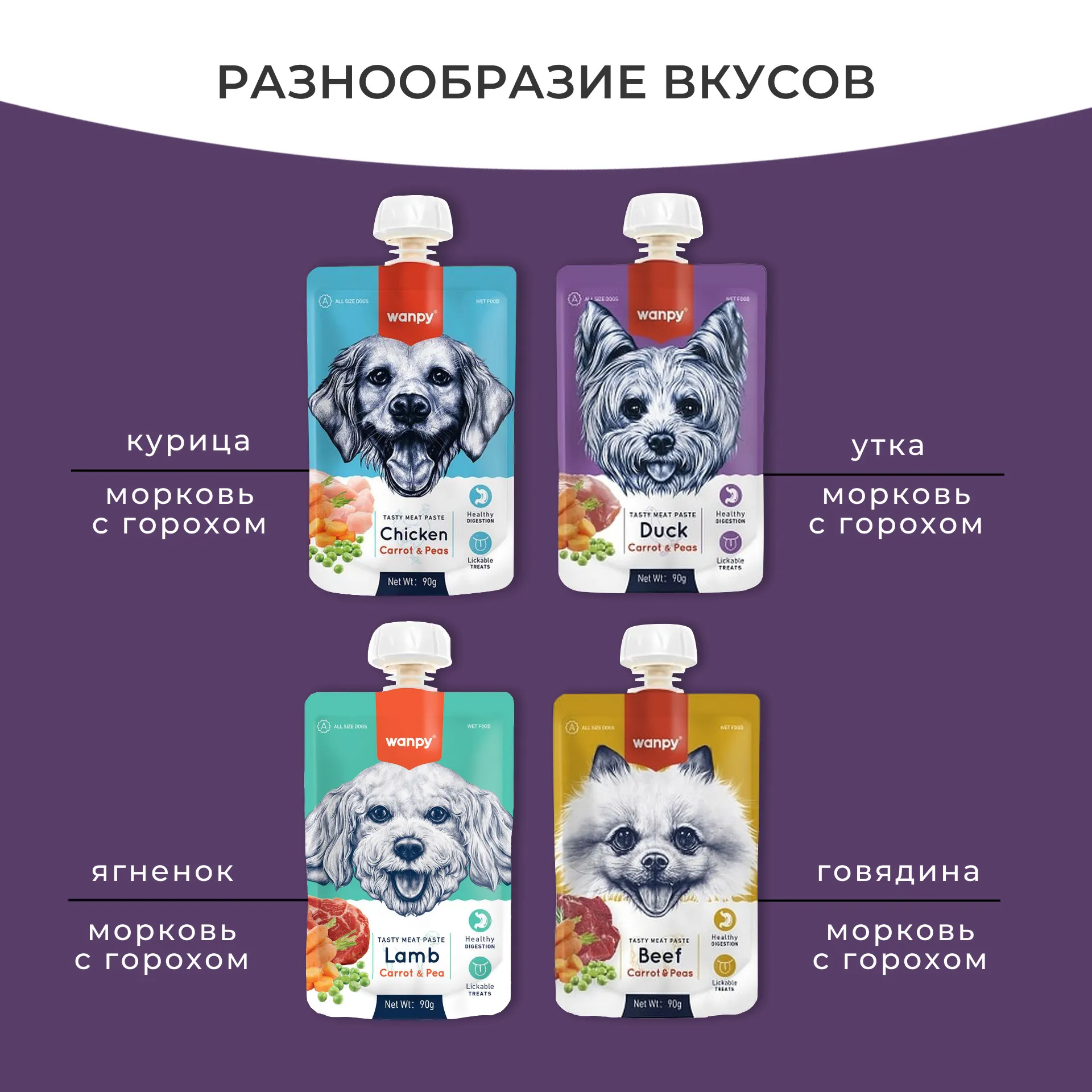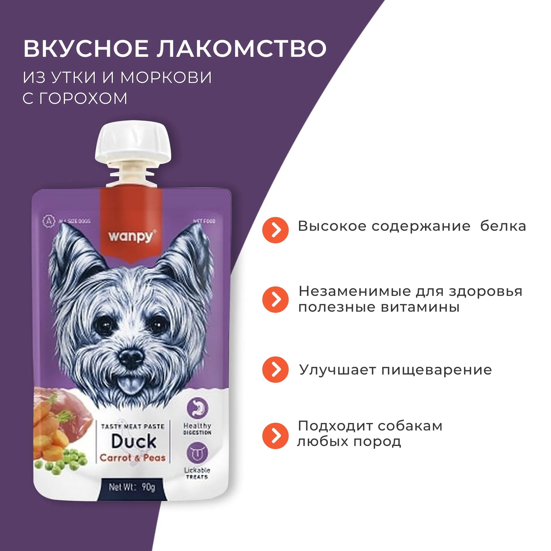 Мясной мусс из утки и моркови с горохом Wanpy Dog — это уникальное