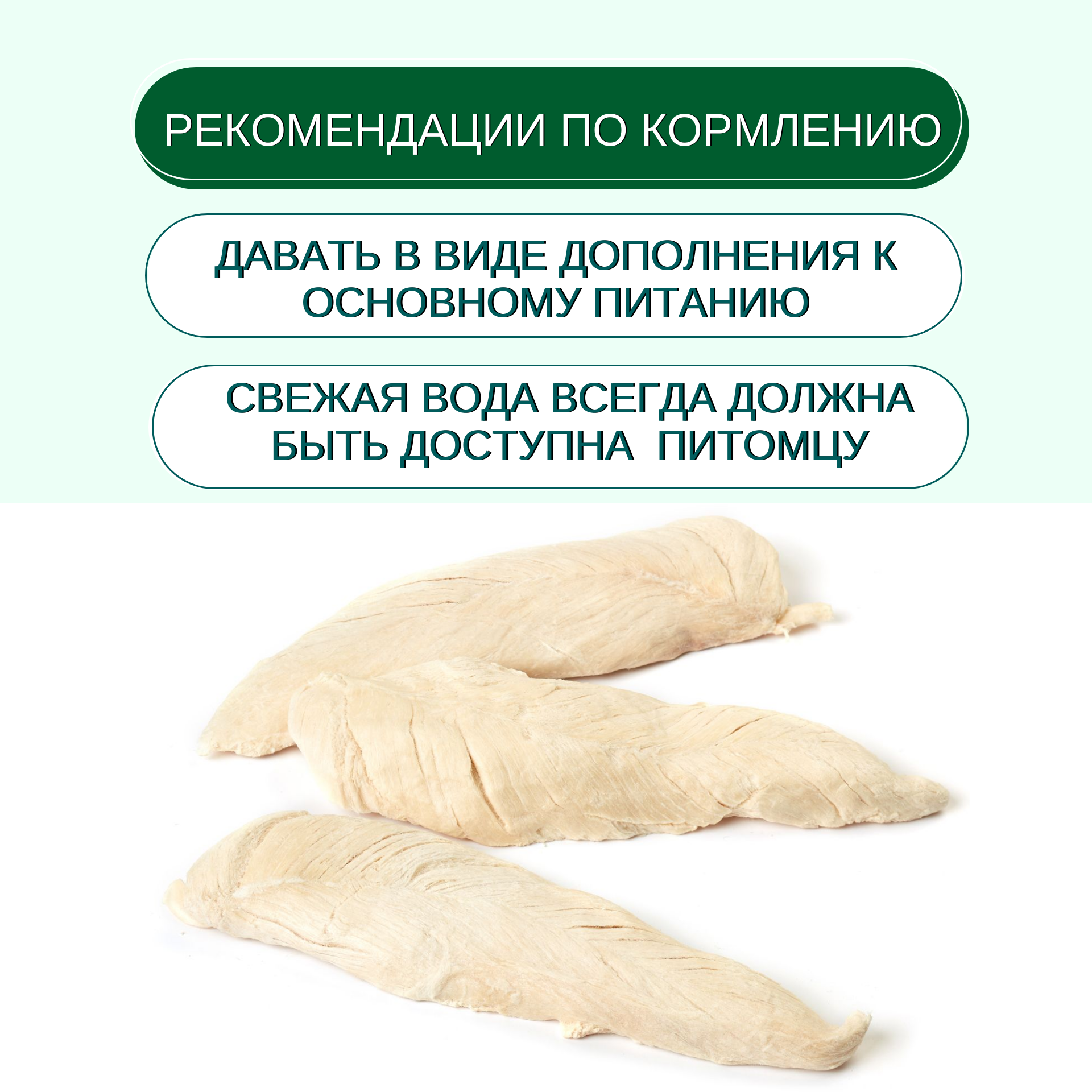 Лакомство состоит только из одного натурального ингредиента - курицы. Благодаря специальному процессу сублимации, все полезные вещества и витамины сохраняются в продукте, при этом он становится еще более вкусным и ароматным.