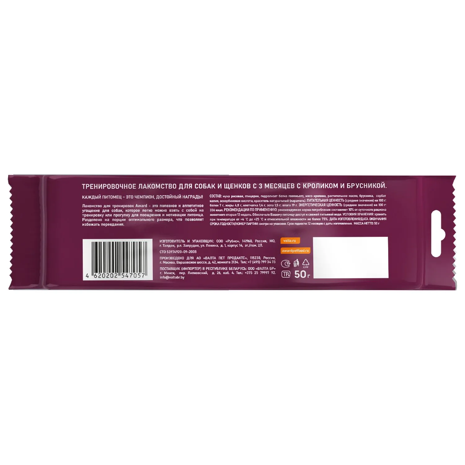 Лакомство для тренировок AWARD для собак и щенков с 3 месяцев с кроликом и брусникой 50г