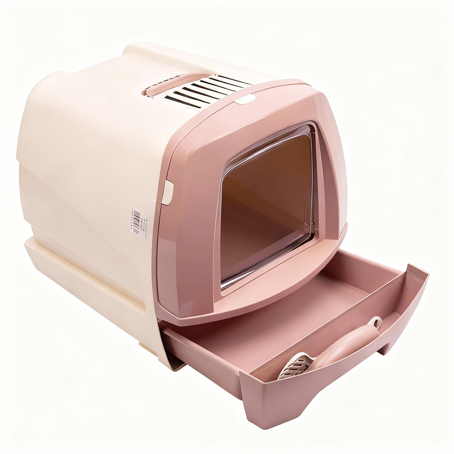 Размеры 50х40х42 см оптимальны для комфортного размещения кошки, при этом туалет не займет много места в вашем доме. Входная дверца с высоким порогом предотвращает высыпание наполнителя. Изготовлен из качественного, легко моющегося пластика. Конструкция с выдвижным лотком обеспечивает дополнительную устойчивость.