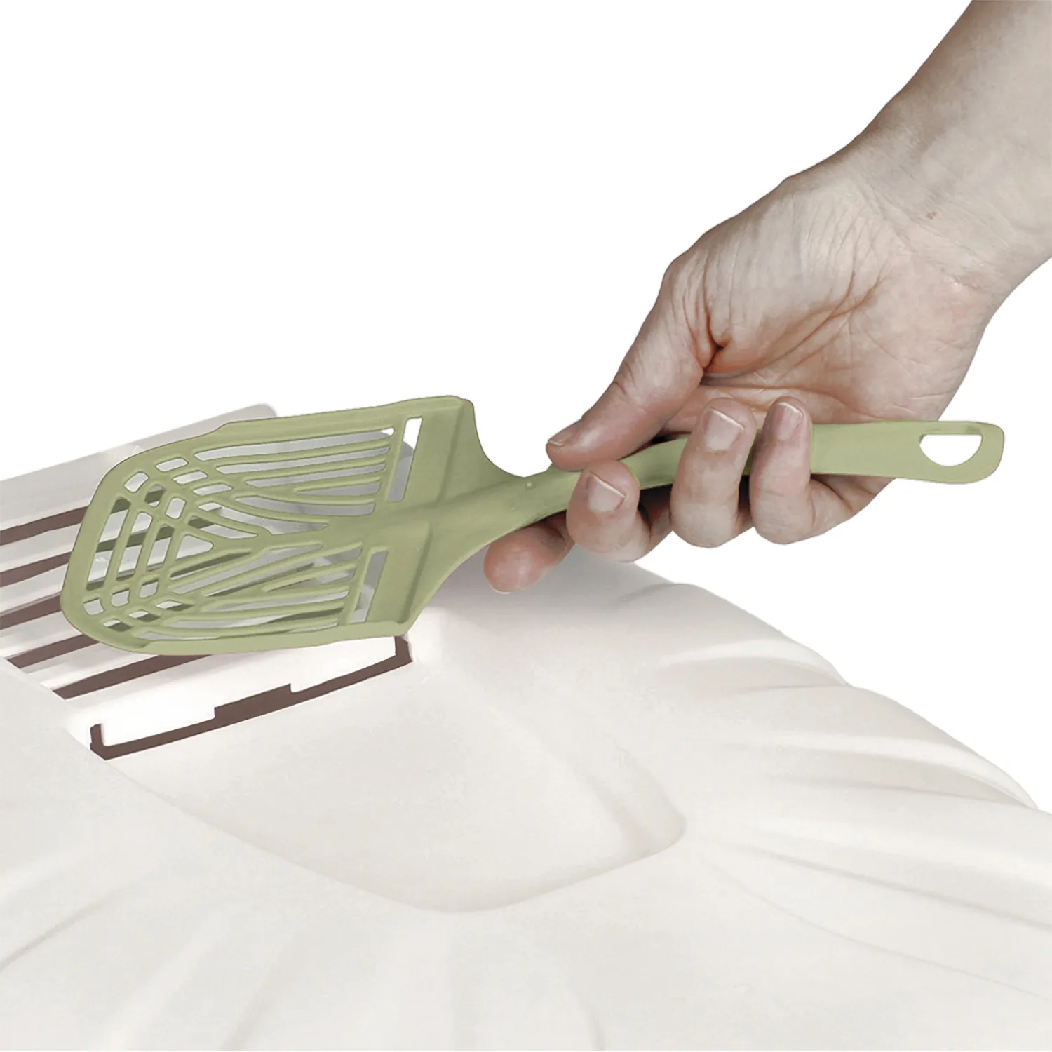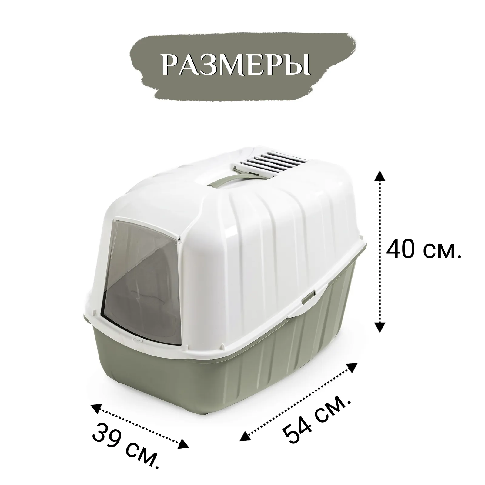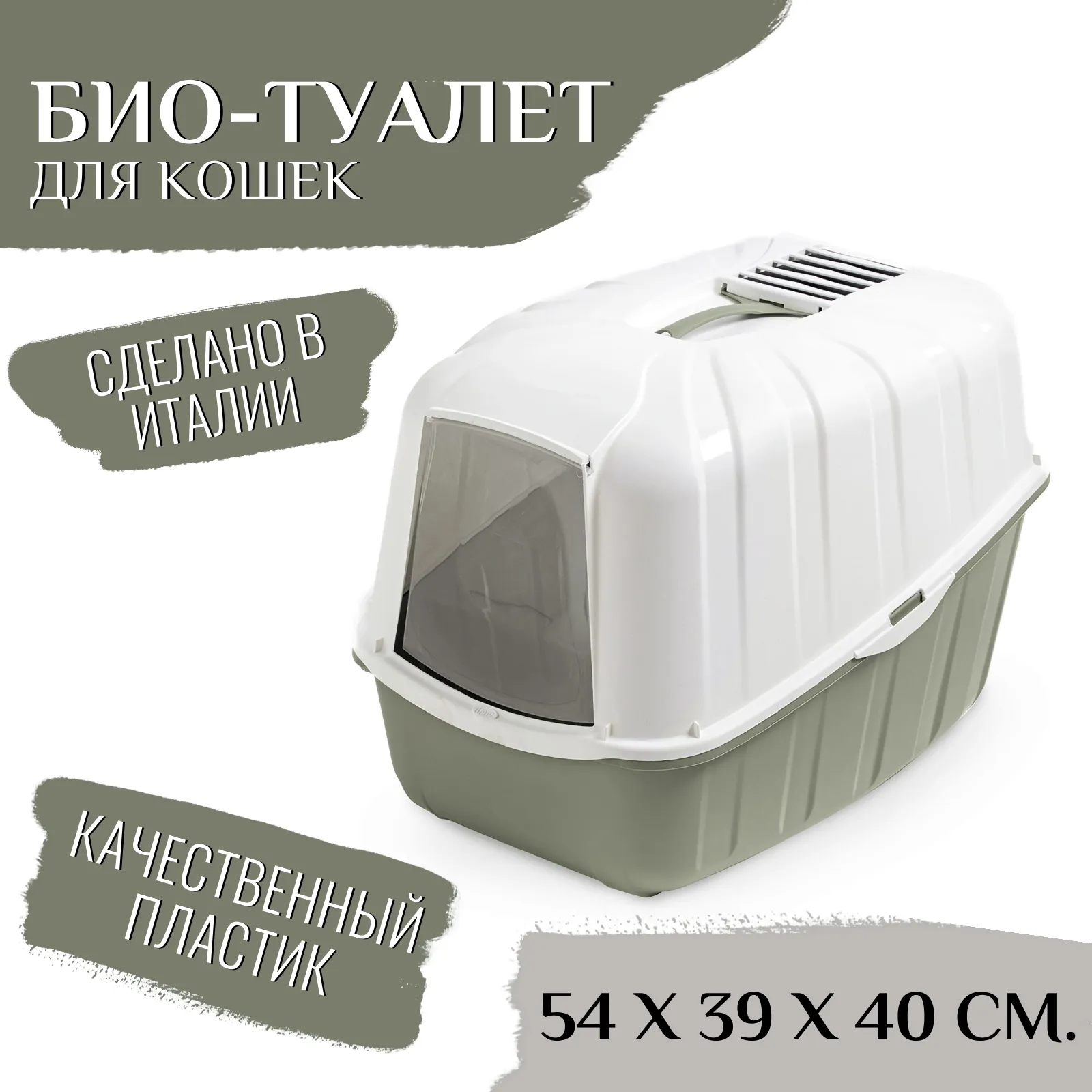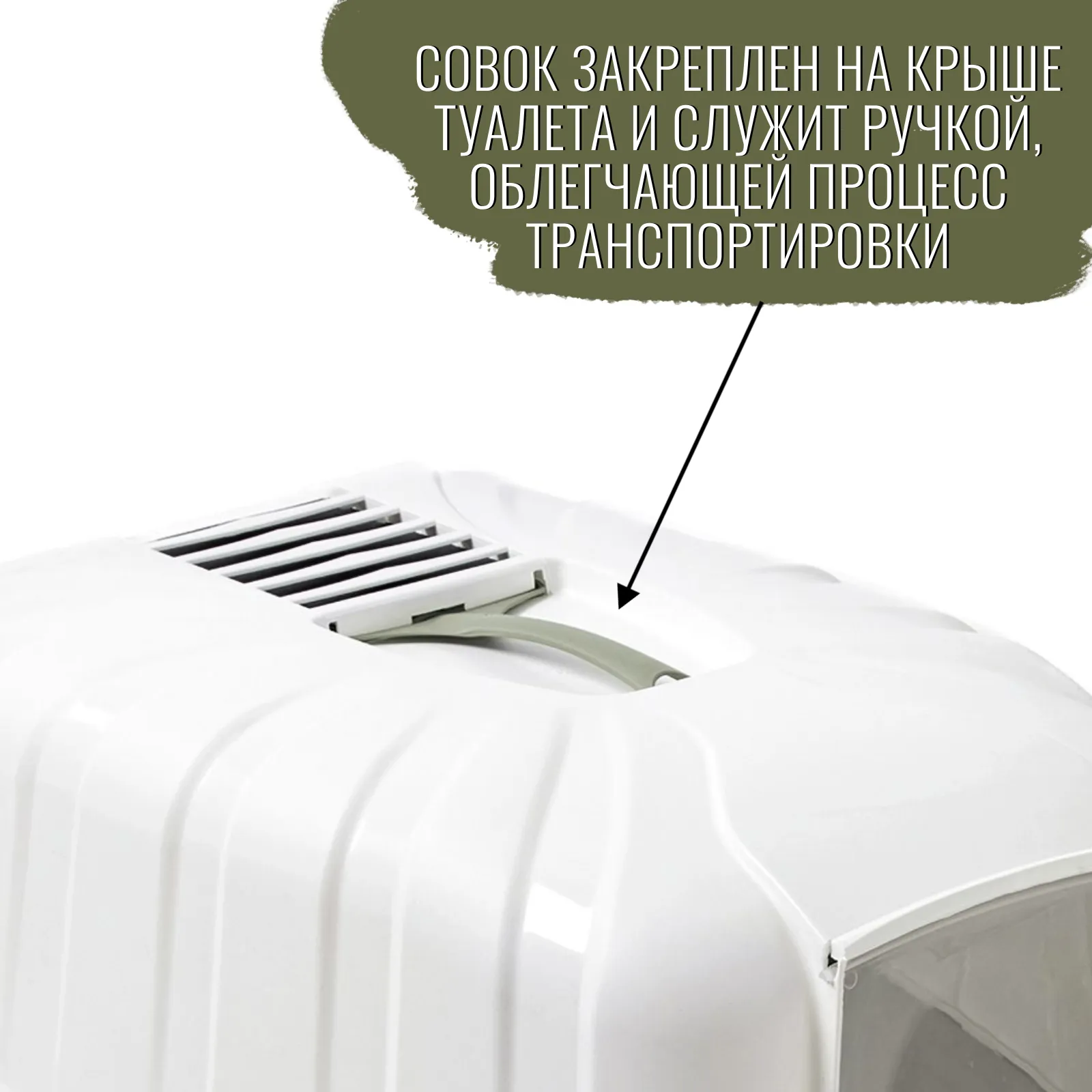 В отличие от обычных лотков био-туалет KOMODA имеет специальный фильтр, который быстро нейтрализует неприятные запахи, дверцу, через которую питомец легко попадает внутрь, а также совок для уборки. Совок закреплен на крыше туалета и служит ручкой, облегчающей процесс транспортировки.