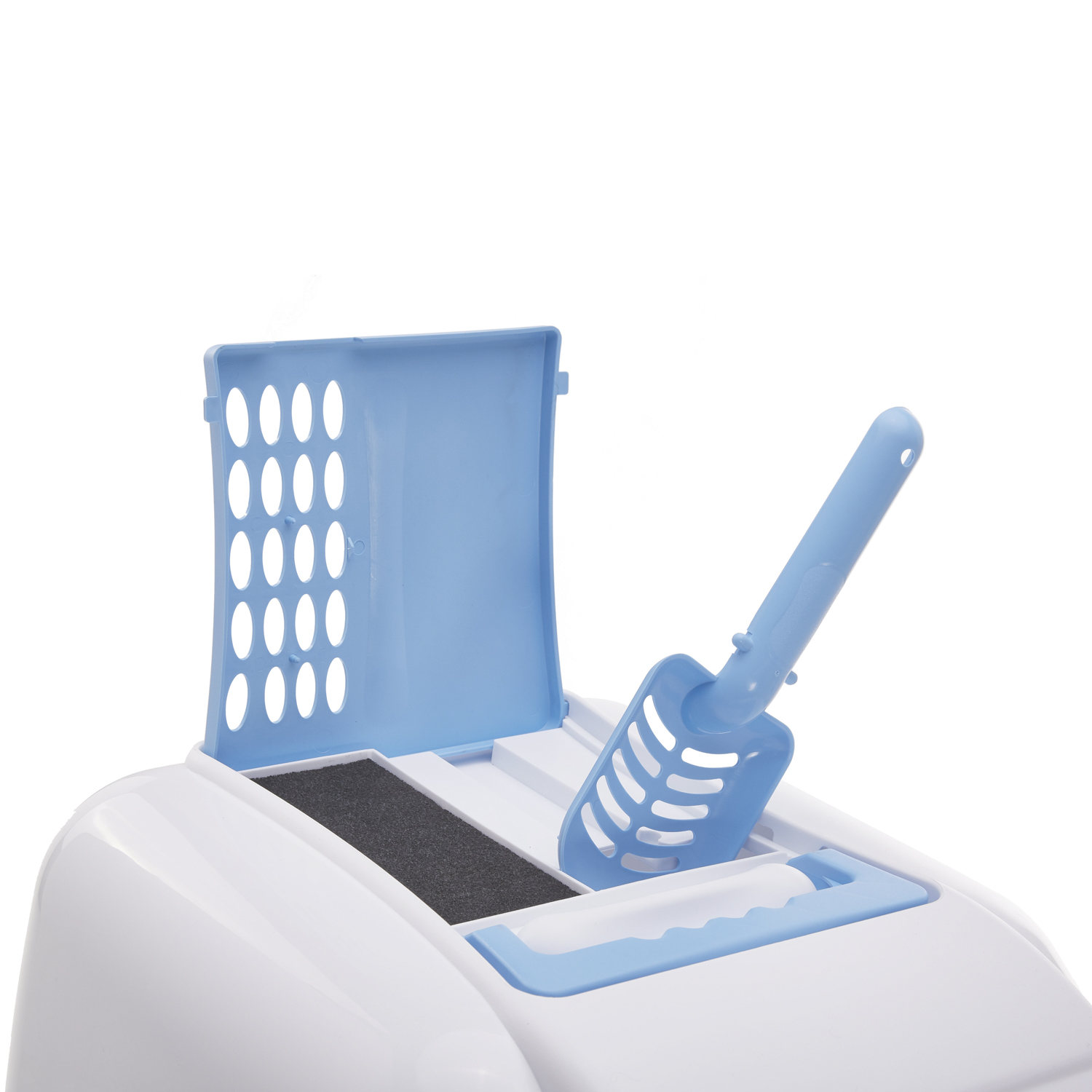 Био-туалет для кошек создан из высококачественного прочного пластика. Его легко поддерживать в чистоте, благодаря удобным боковым защелкам. Оборудован выдвижной ручкой для размещения в подходящем месте вашего дома. Откидная дверца вместе с фильтром задерживает запахи и гарантирует хорошую вентиляцию. В комплекте есть совок с удобным креплением.