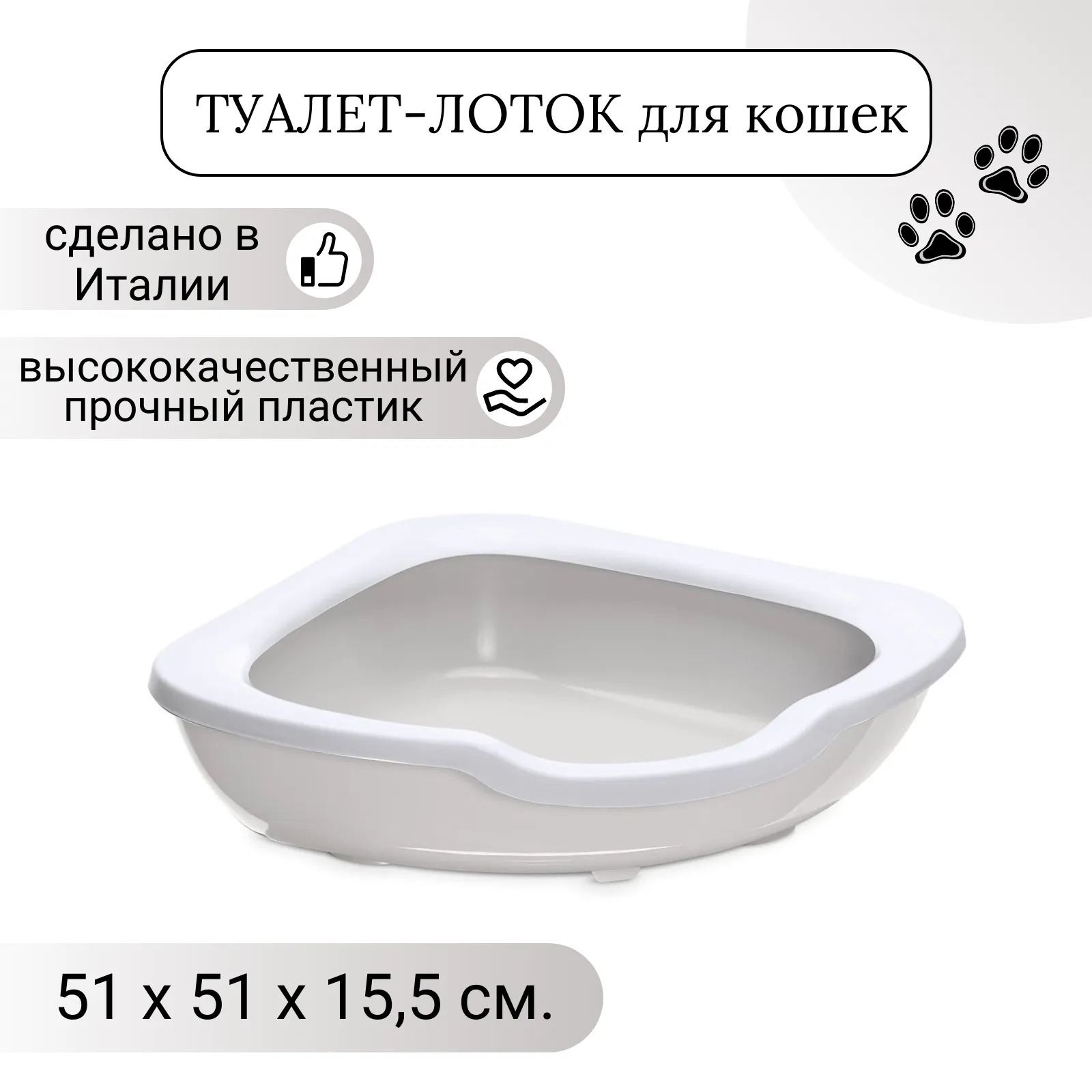 IMAC туалет-лоток для кошек угловой FRED 51х51х15,5h см, светло-серый