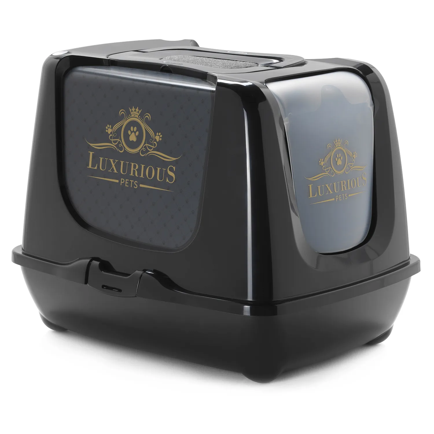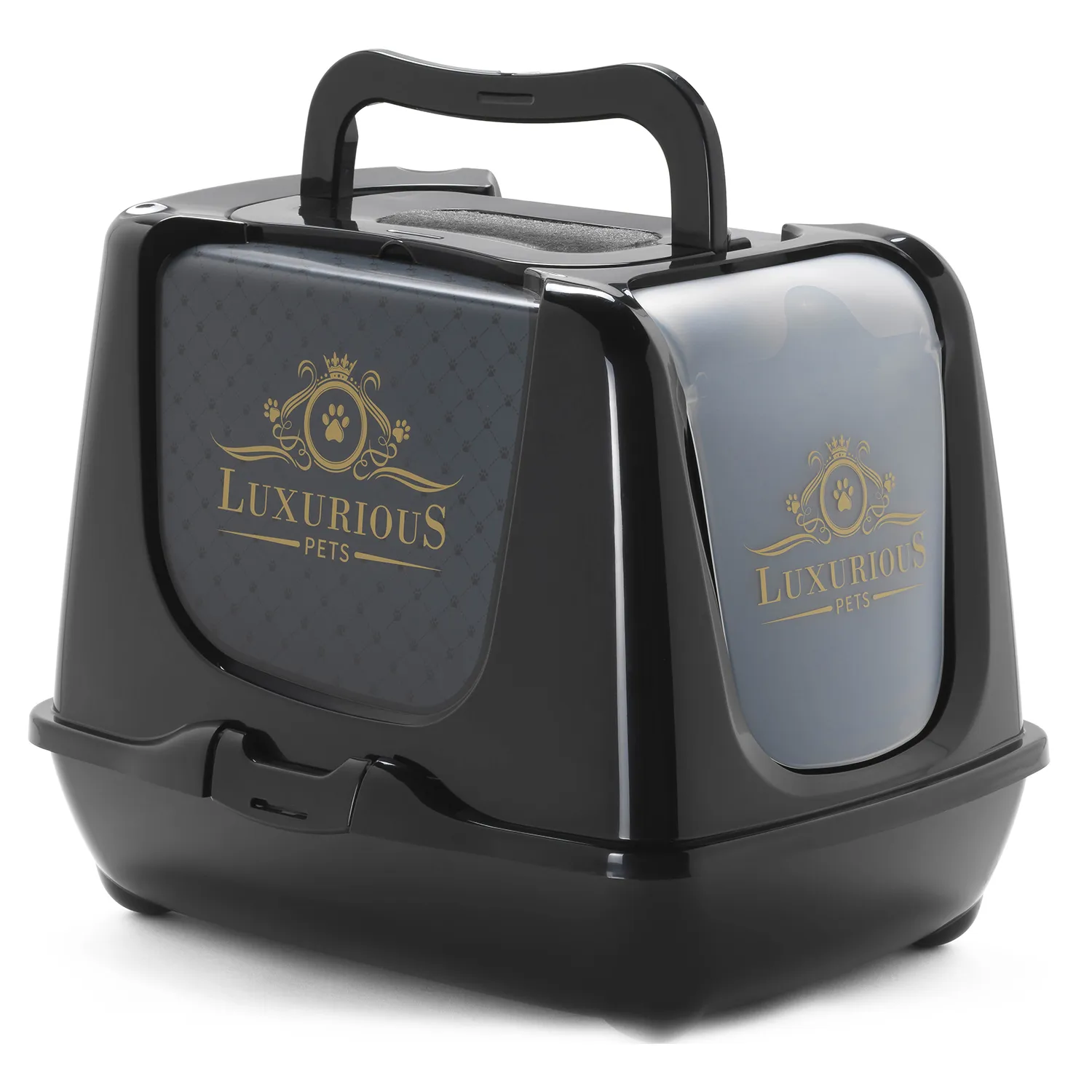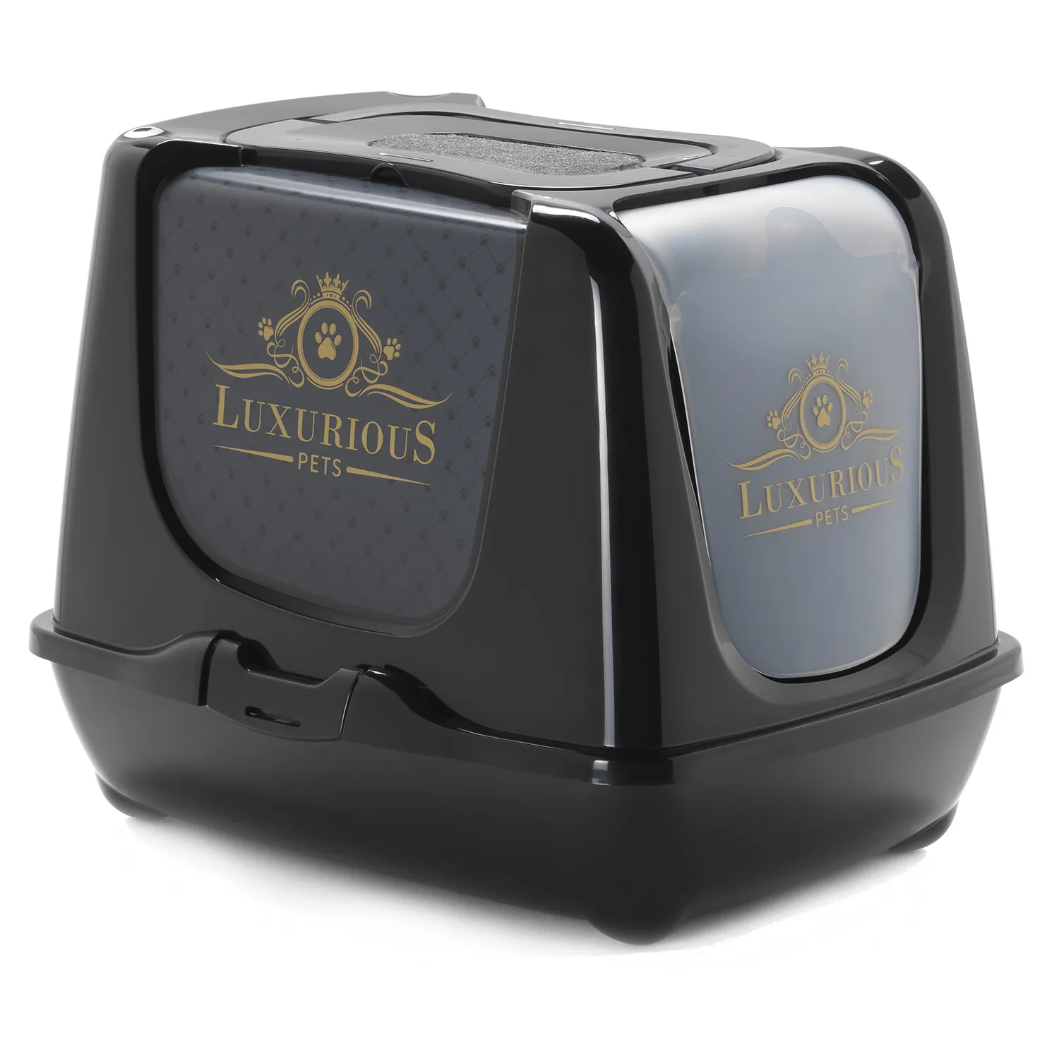 - Разборная конструкция закрытого туалета для кошек - крышка и глубокое основание-лоток надежно фиксируются с двух сторон замками-защелками и позволяет быстро собирать/разбирать туалет для дальнейшей его чистки и мытья.
