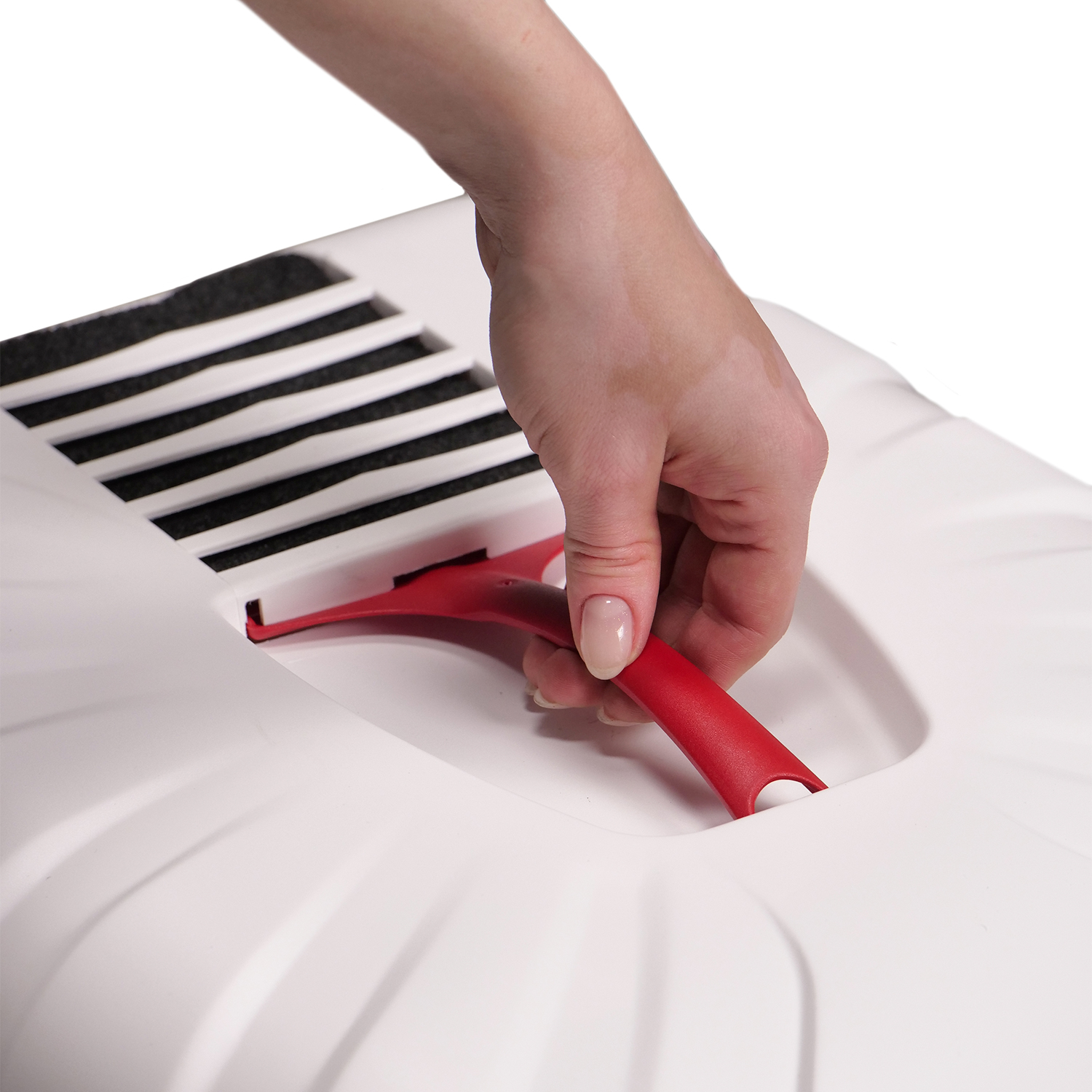 В отличие от обычных лотков био-туалет KOMODA имеет специальный фильтр, который быстро нейтрализует неприятные запахи, дверцу, через которую питомец легко попадает внутрь, а также совок для уборки. Совок закреплен на крыше туалета и служит ручкой, облегчающей процесс транспортировки.