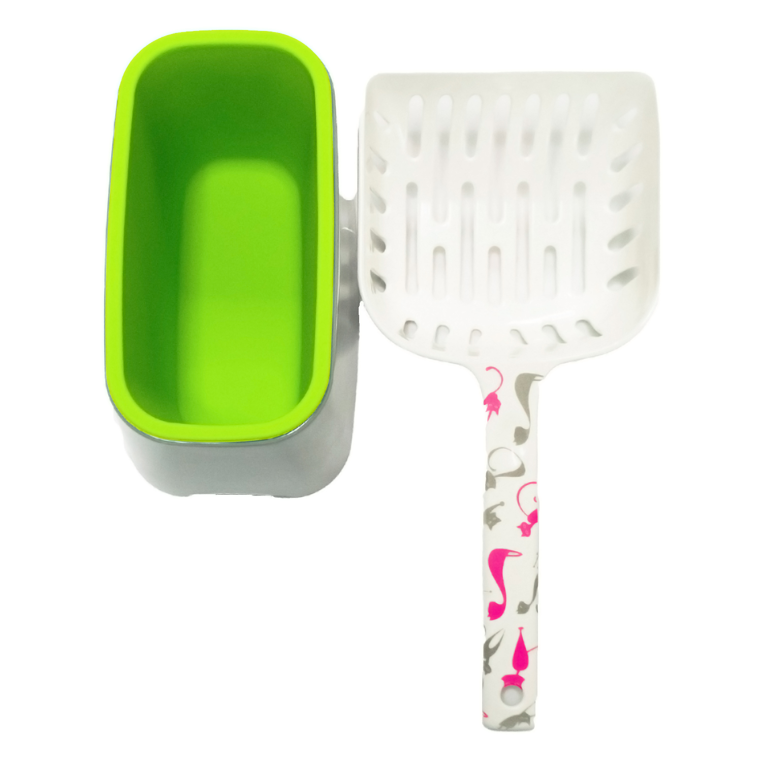 Бокс-очиститель для совков подойдёт для большинства видов совков для уборки кошачьих туалетов. Стильный дизайн и простая конструкция делают его полезным в поддержании гигиены дома.