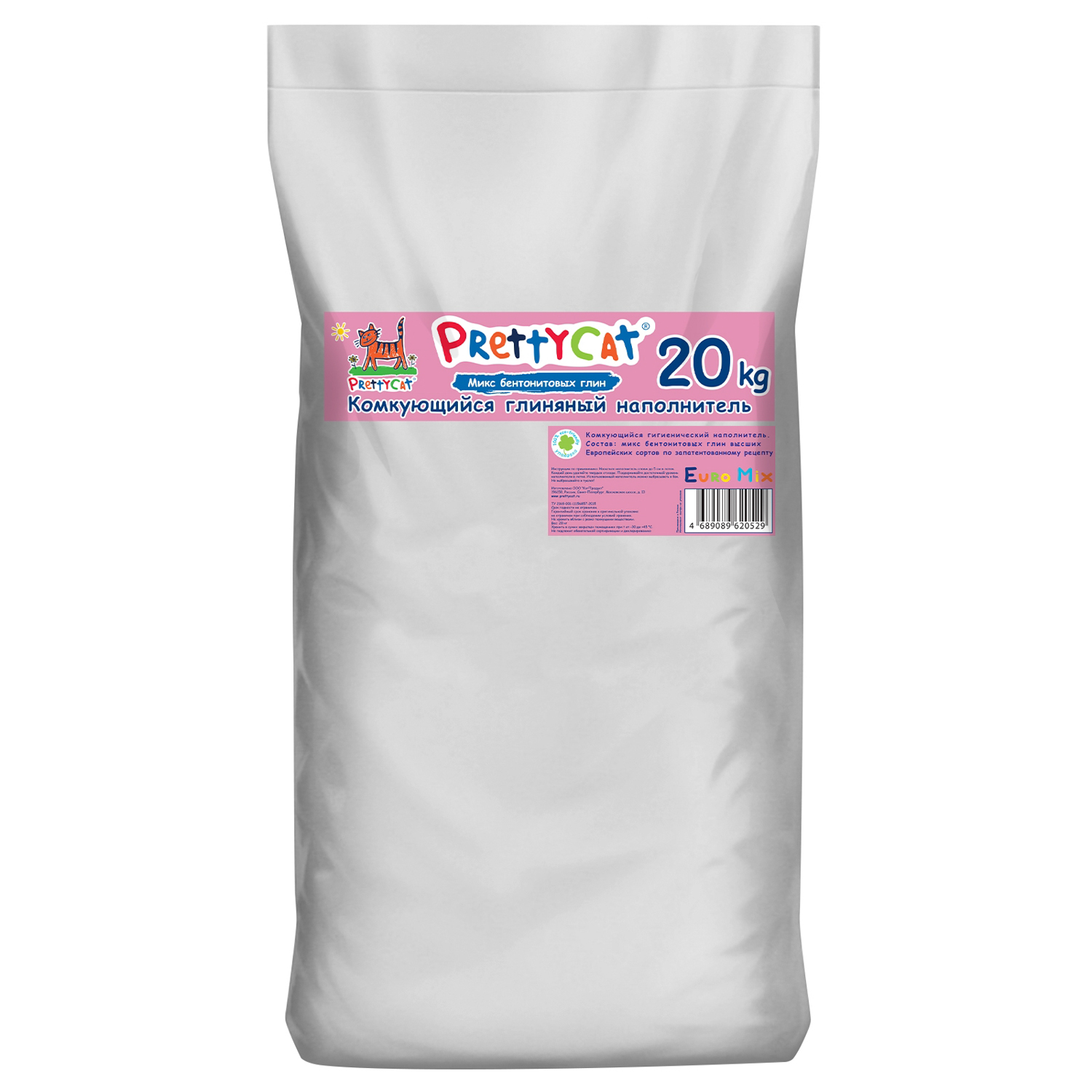 Наполнитель PrettyCat комкующийся бентонитовый "Euro Mix" 20 кг CLUB