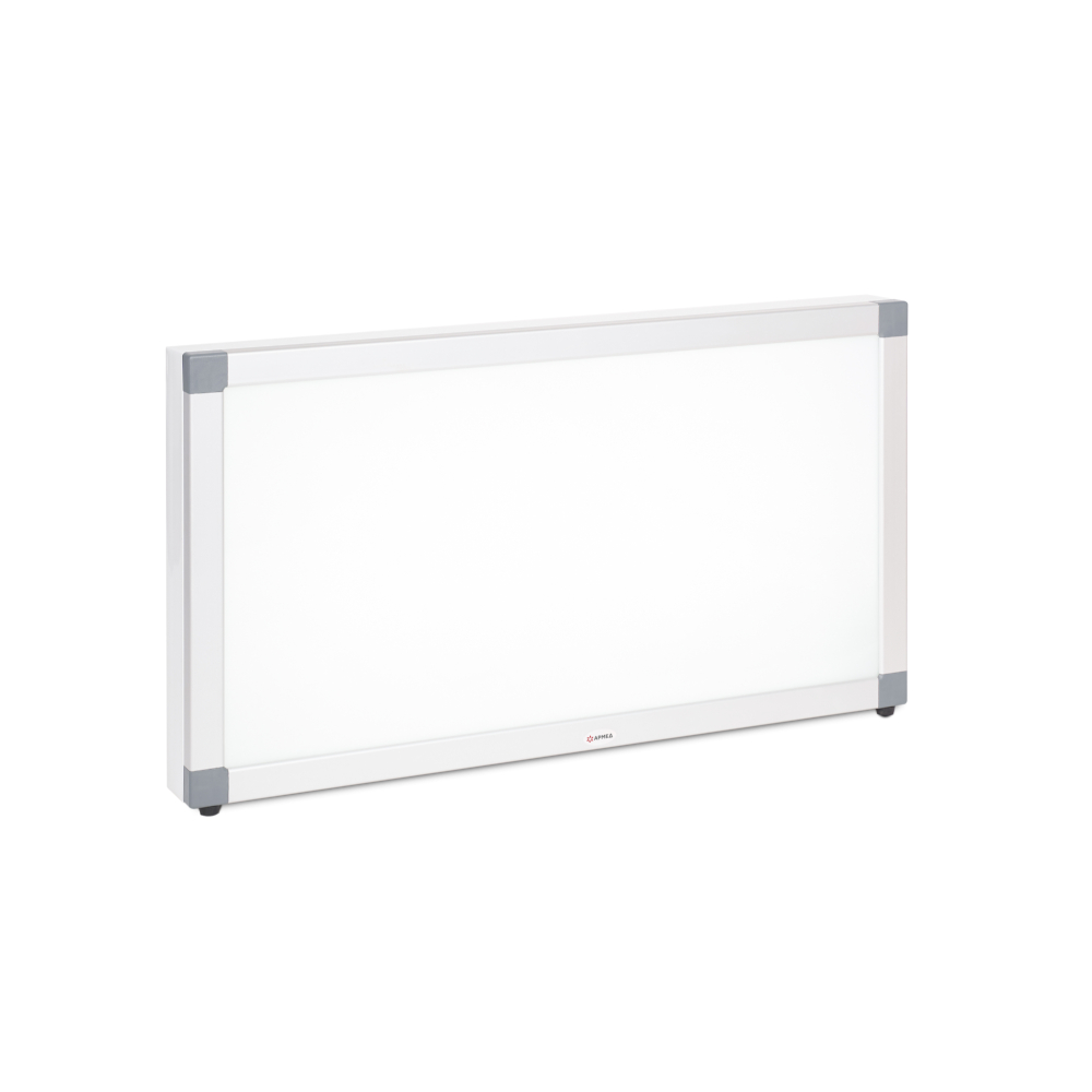 Негатоскоп общего назначения двухкадровый можно повесить на стену или установить на стол – на задней крышке есть отверстия для крепежей, а на корпусе имеются удобные ножки. Восемь светодиодных линеек внутри устройства обеспечивают высокую яркость свечения, равномерное распределение света, а матовое стекло исключает блики. Прибор включается всего одной кнопкой. Рентгеновские снимки устанавливают в специальные пазы: надежная фиксация обеспечивает удобный просмотр.