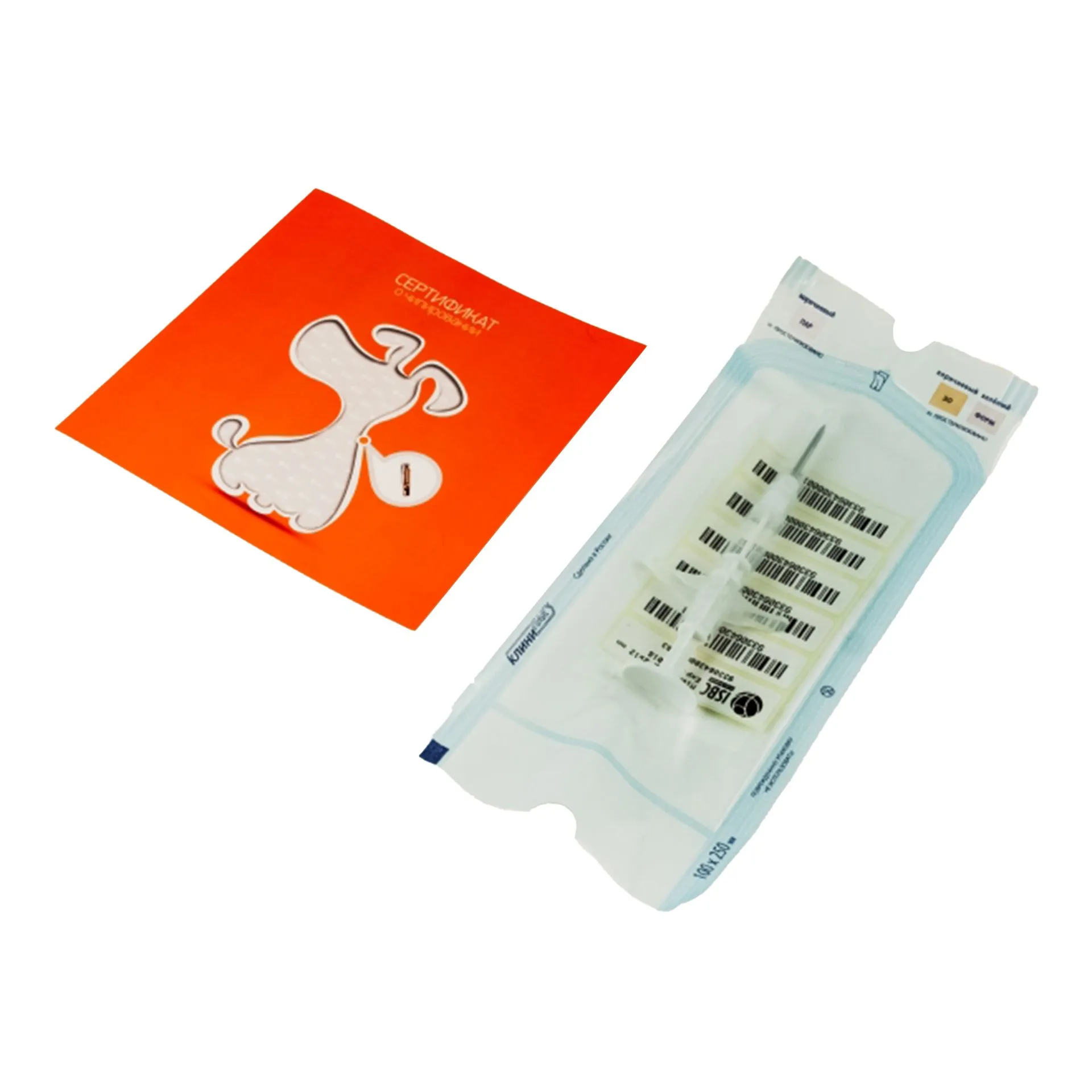 Каждый микрочип помещен в одноразовый шприц для введения. Специальная упаковка позволяет шприцу оставаться стерильным до момента его непосредственного использования.