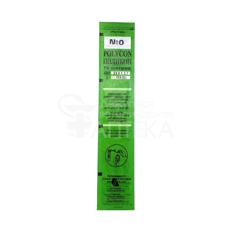 АСМ ПОЛИКОН ( 0 ) полиамидная хирургическая нить для ветеринарного применения 10 м (TONZOS 95 J.S. Co) ИЗ НАЛИЧИЯ СКИДКА 20%
