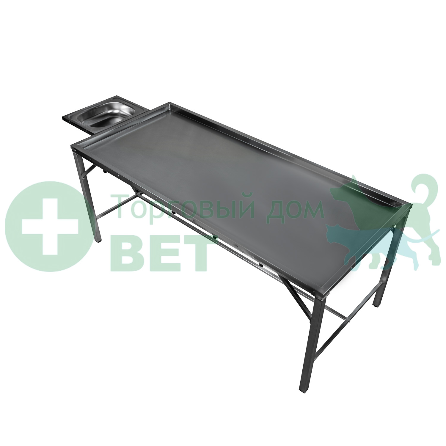 Рабочая поверхность стола ограничена бортиком, имеется раковина со сливным отверстием для стока биологических жидкостей.