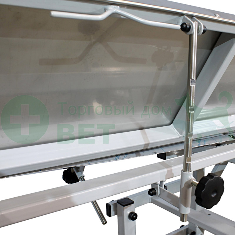 Столешница имеет крючки с каждой стороны по краям для фиксации конечностей животных с помощью веревок во время оперативных вмешательств.