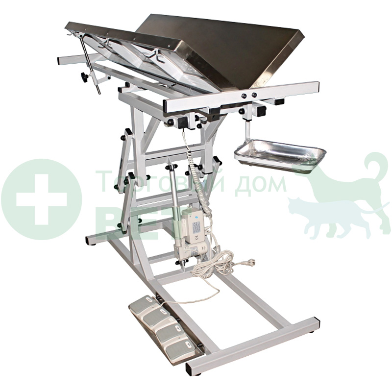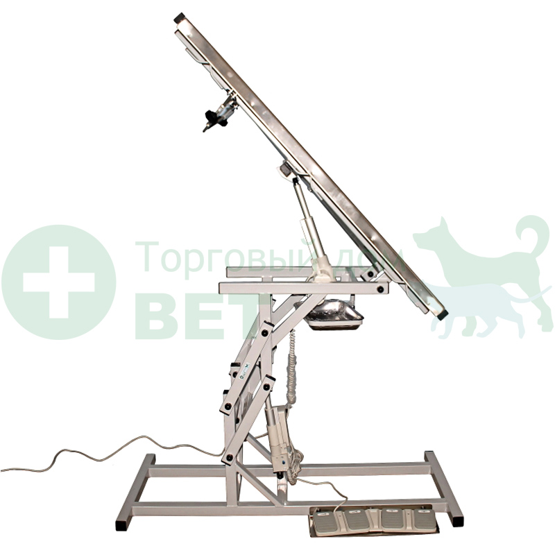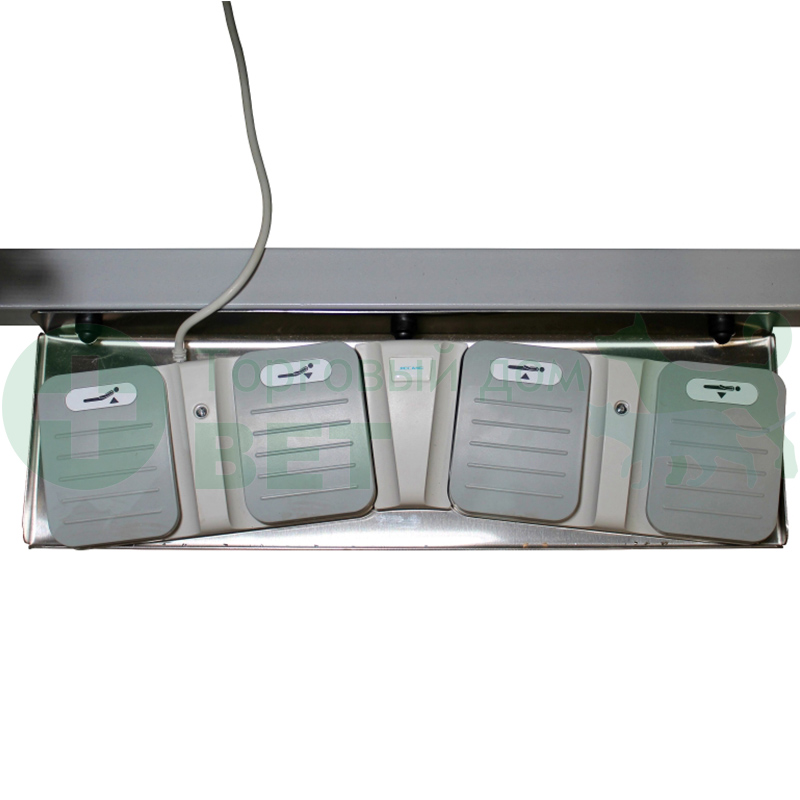 V-образная столешница регулируется электроприводами по высоте от 70 до 98 см и по наклону от 0° до 45°. Управление электроприводами осуществляется с ножного пульта.