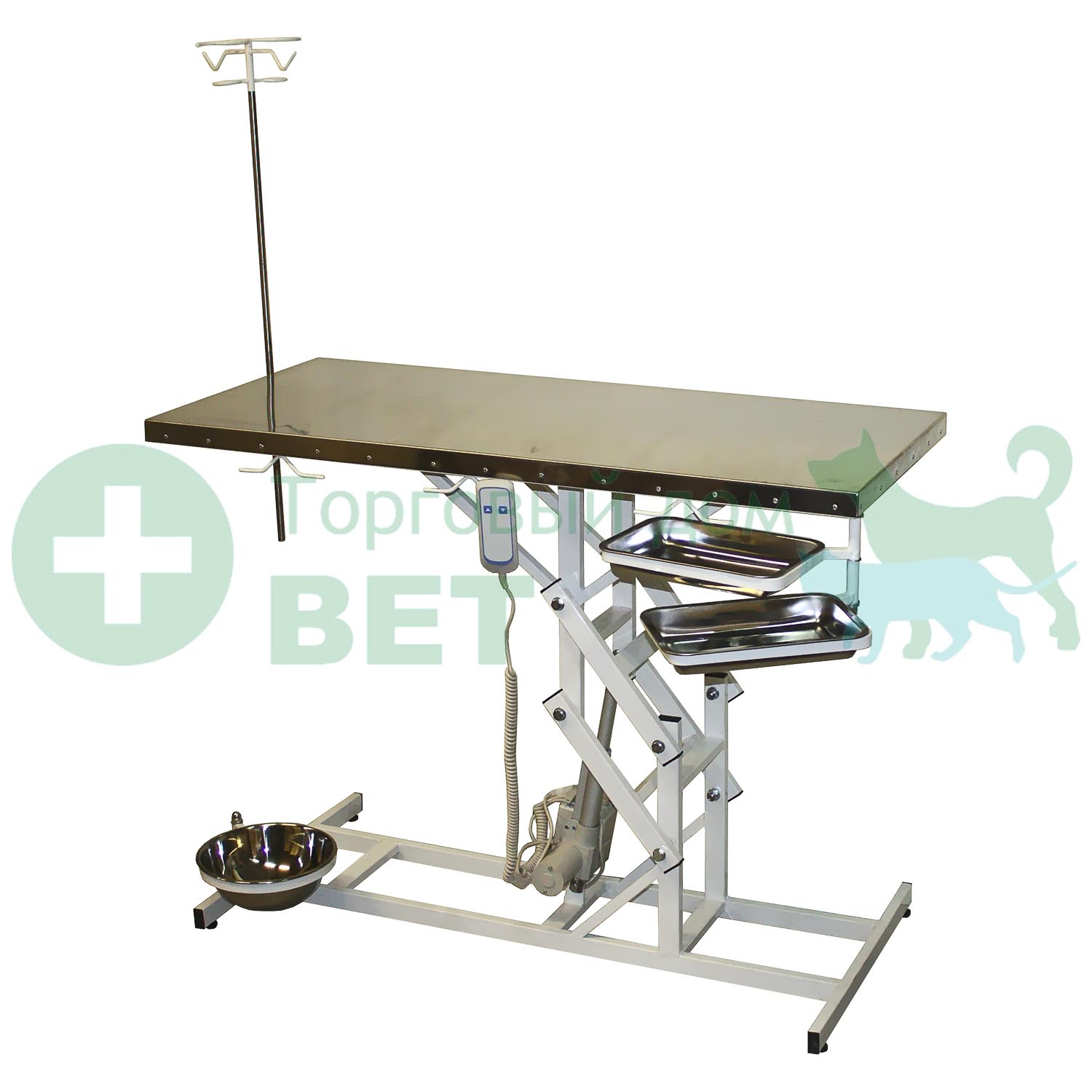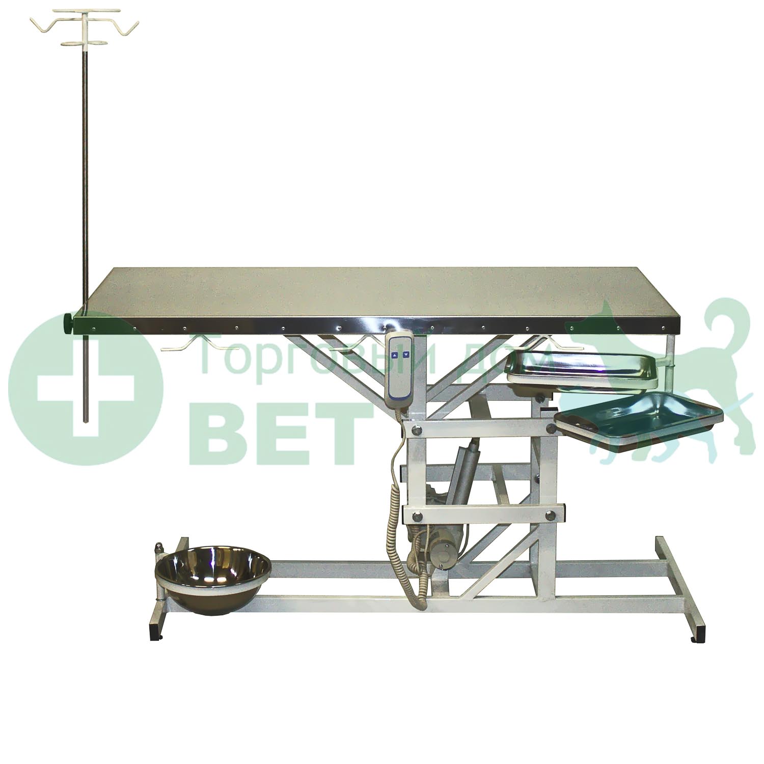 За счет электрической регулировки высоты стола станет удобной работа с крупными животными, так как нет необходимости самостоятельно поднимать животных. Столешница имеет множество крючков по краям для фиксации животных во время оперативных вмешательств