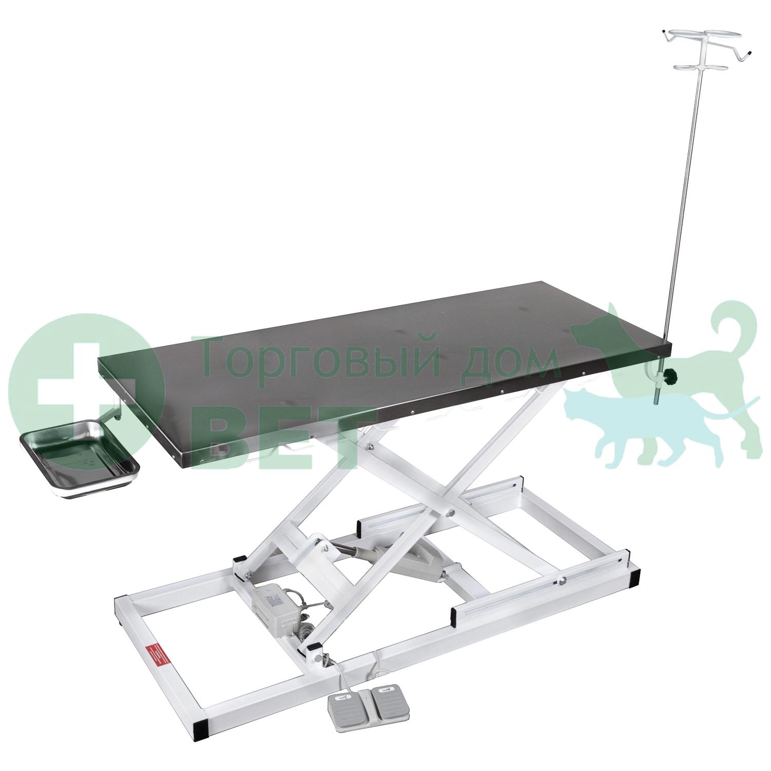 ТД ВЕТ Стол ветеринарный VETBOT-72.1500 без слива, со штативом, электропривод, 1500x600x(330- 1050)h мм (каркас белый, пульт ножной 1п)