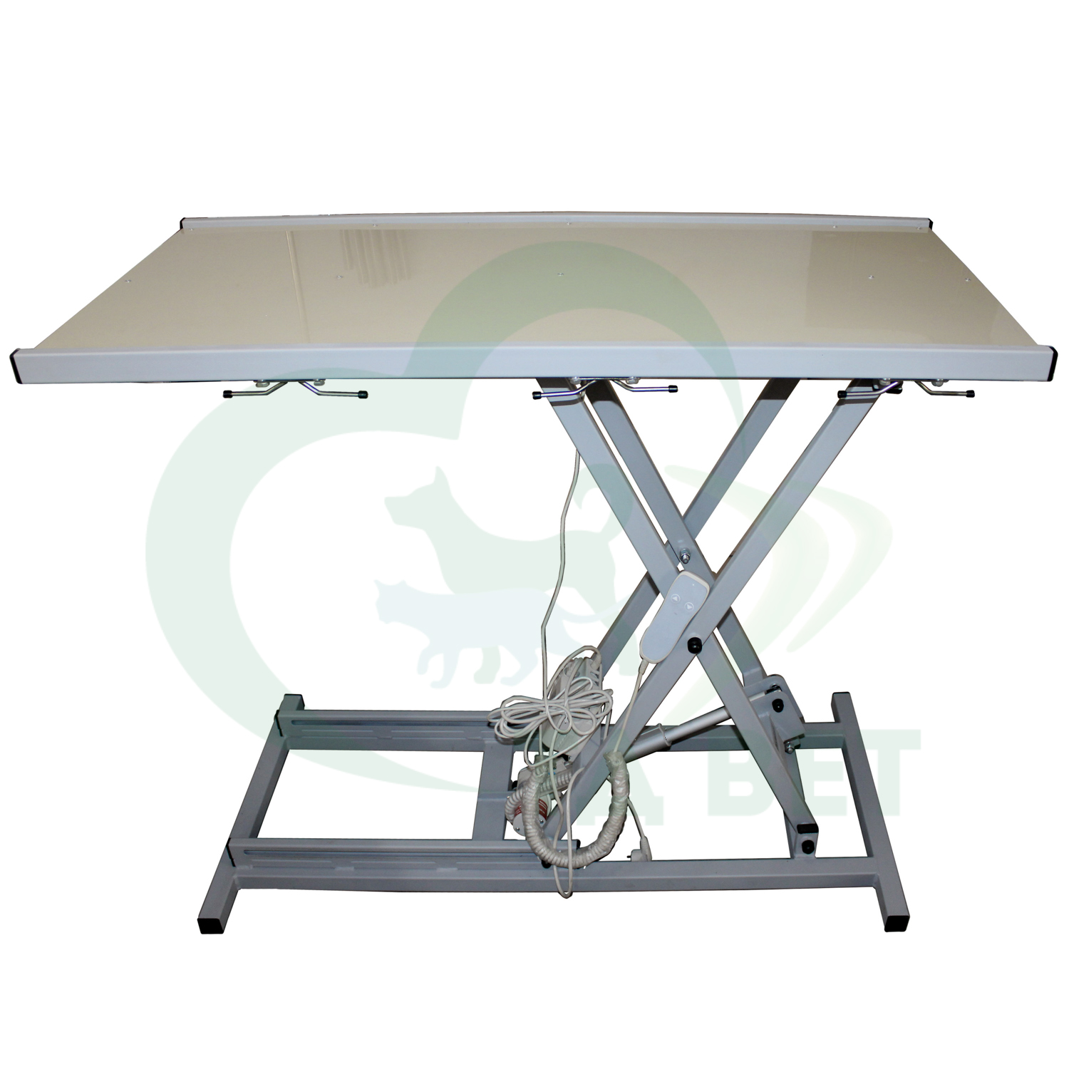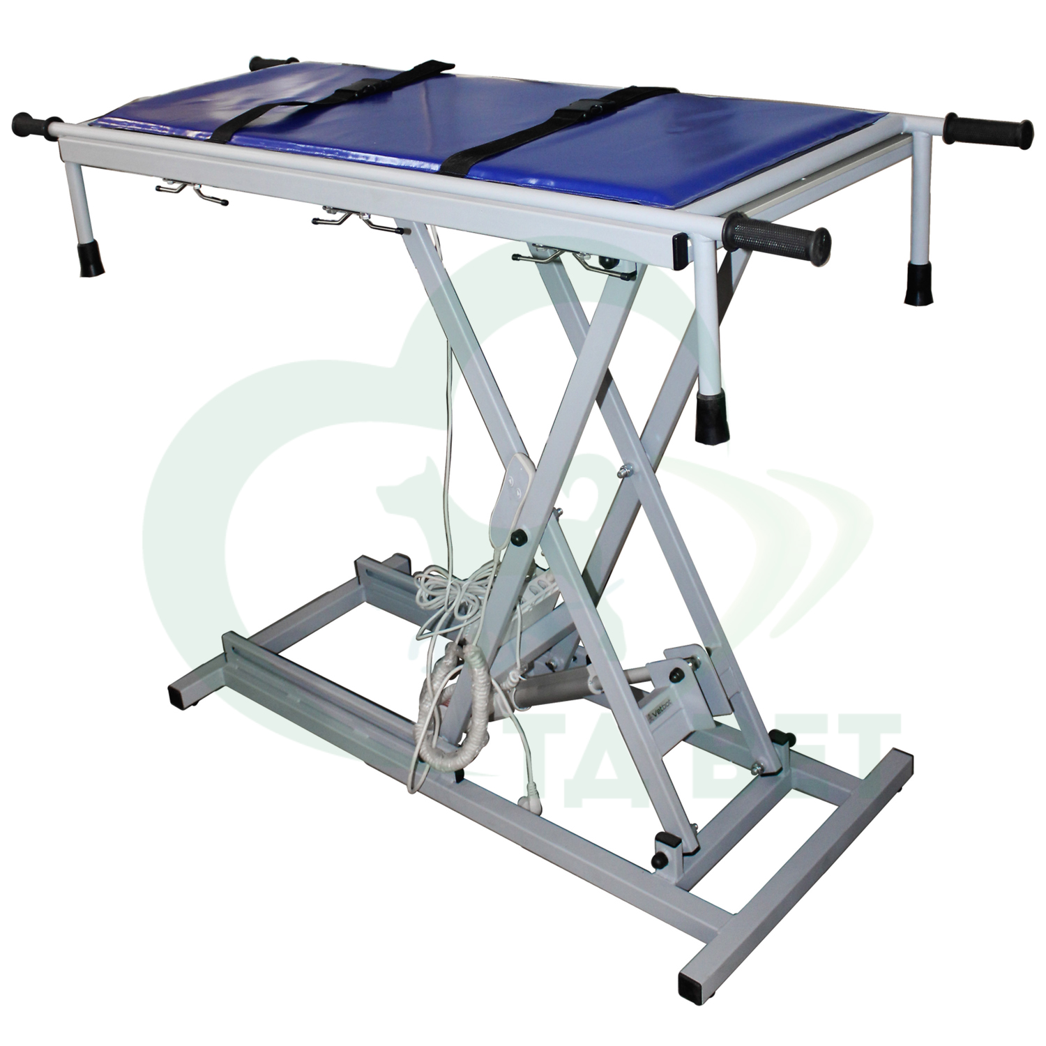 Благодаря электроприводу мощностью 290 Вт, стол способен поднять до 100 кг, что позволяет работать с крупными животными.