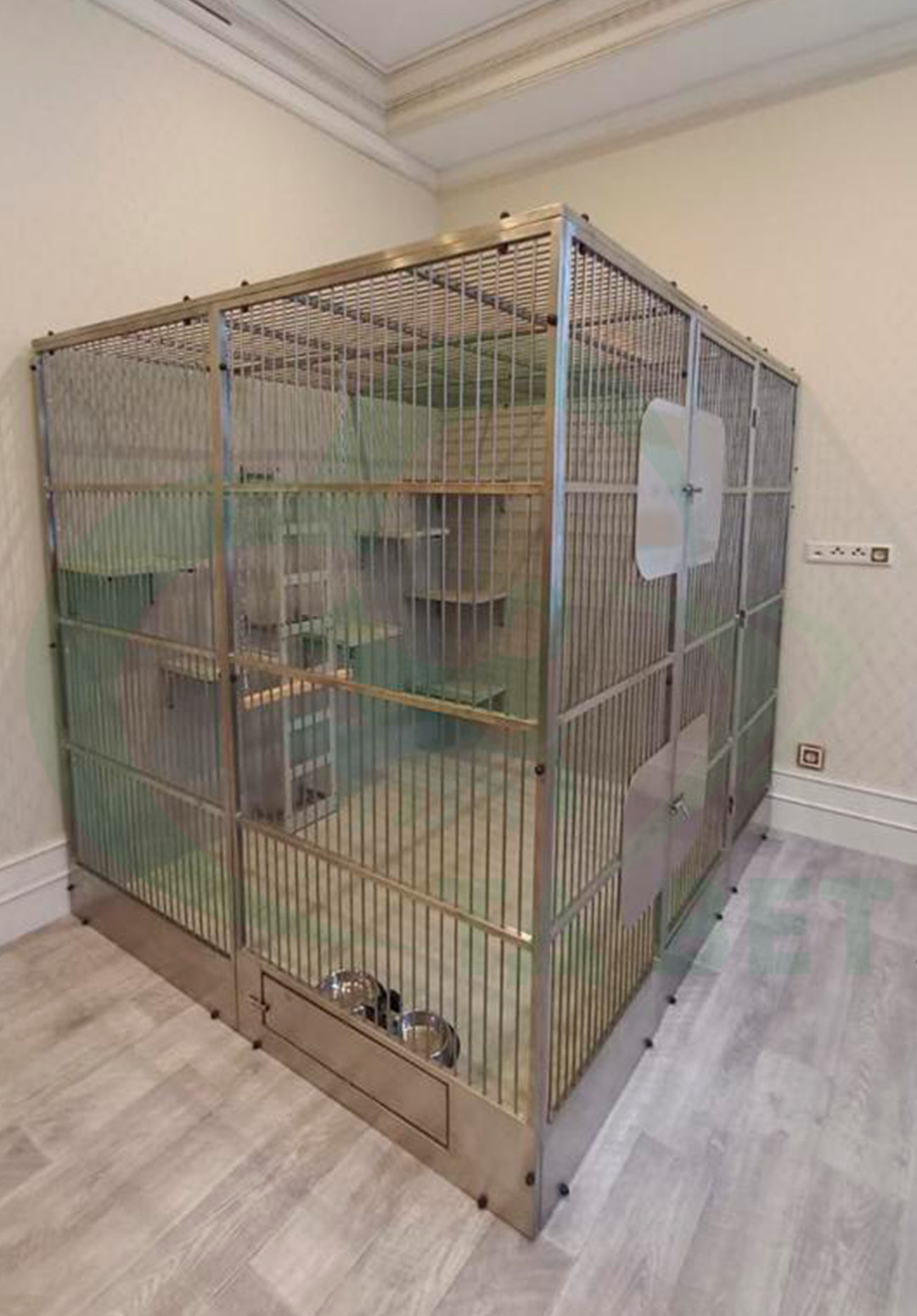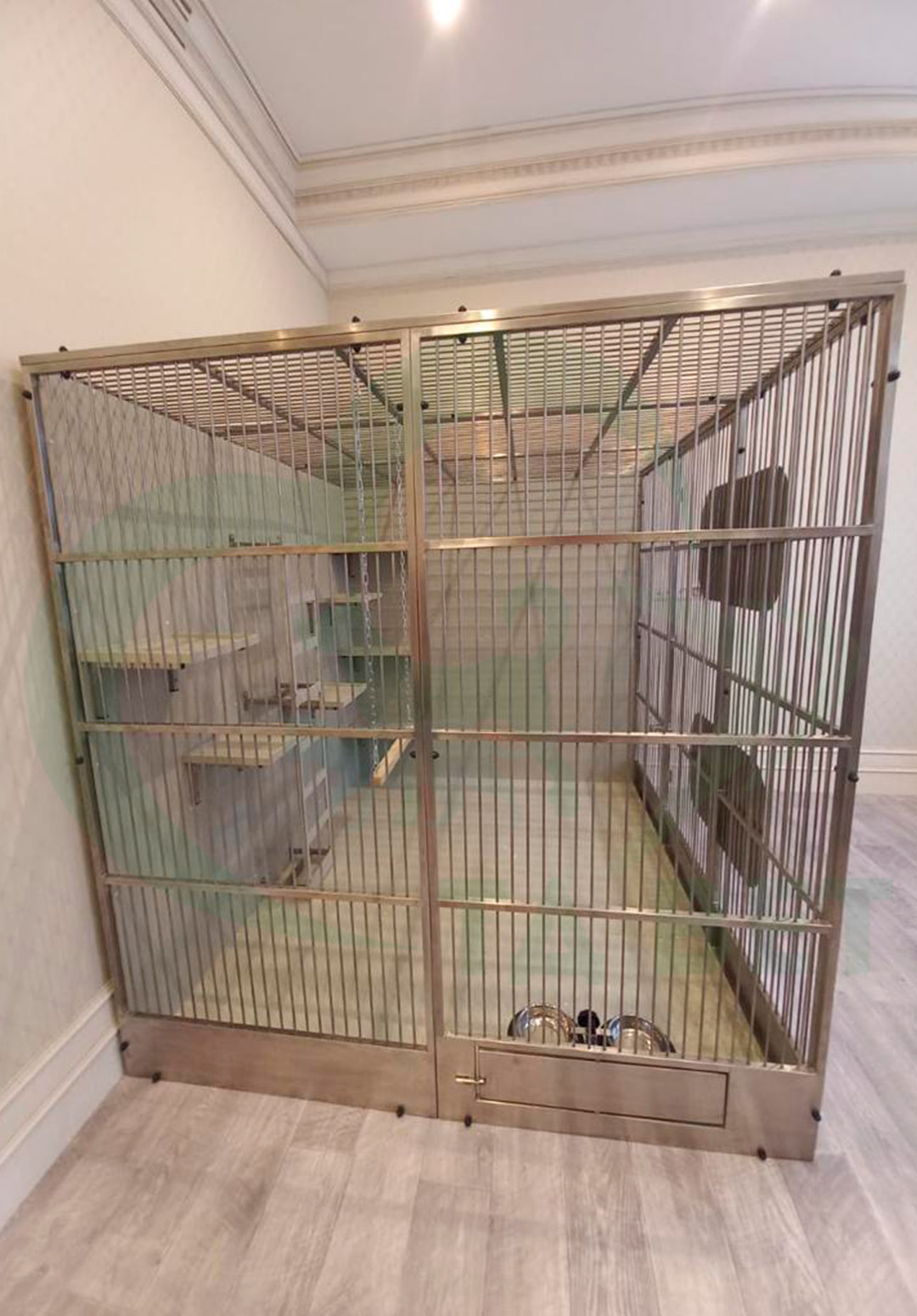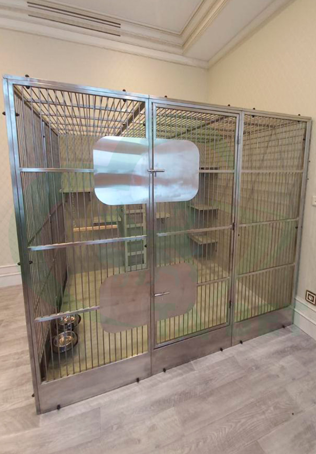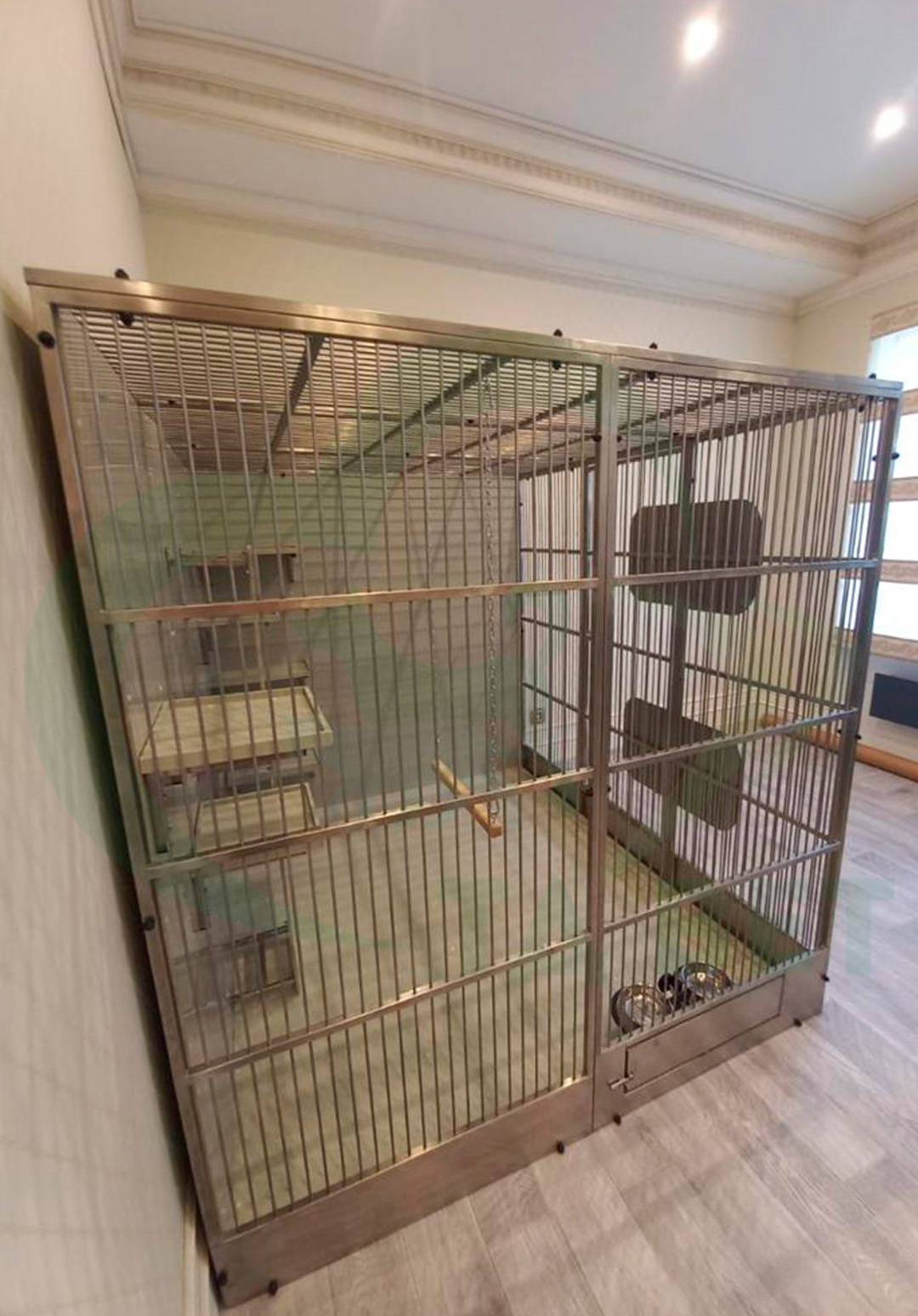 - Вольер изготовлен из прута из нержавеющей стали диаметром 6 мм, задние и боковые стенки изготовлены из полипропилена толщиной 6 мм.