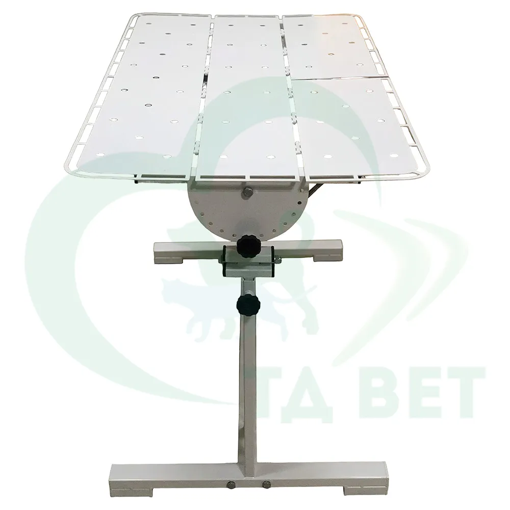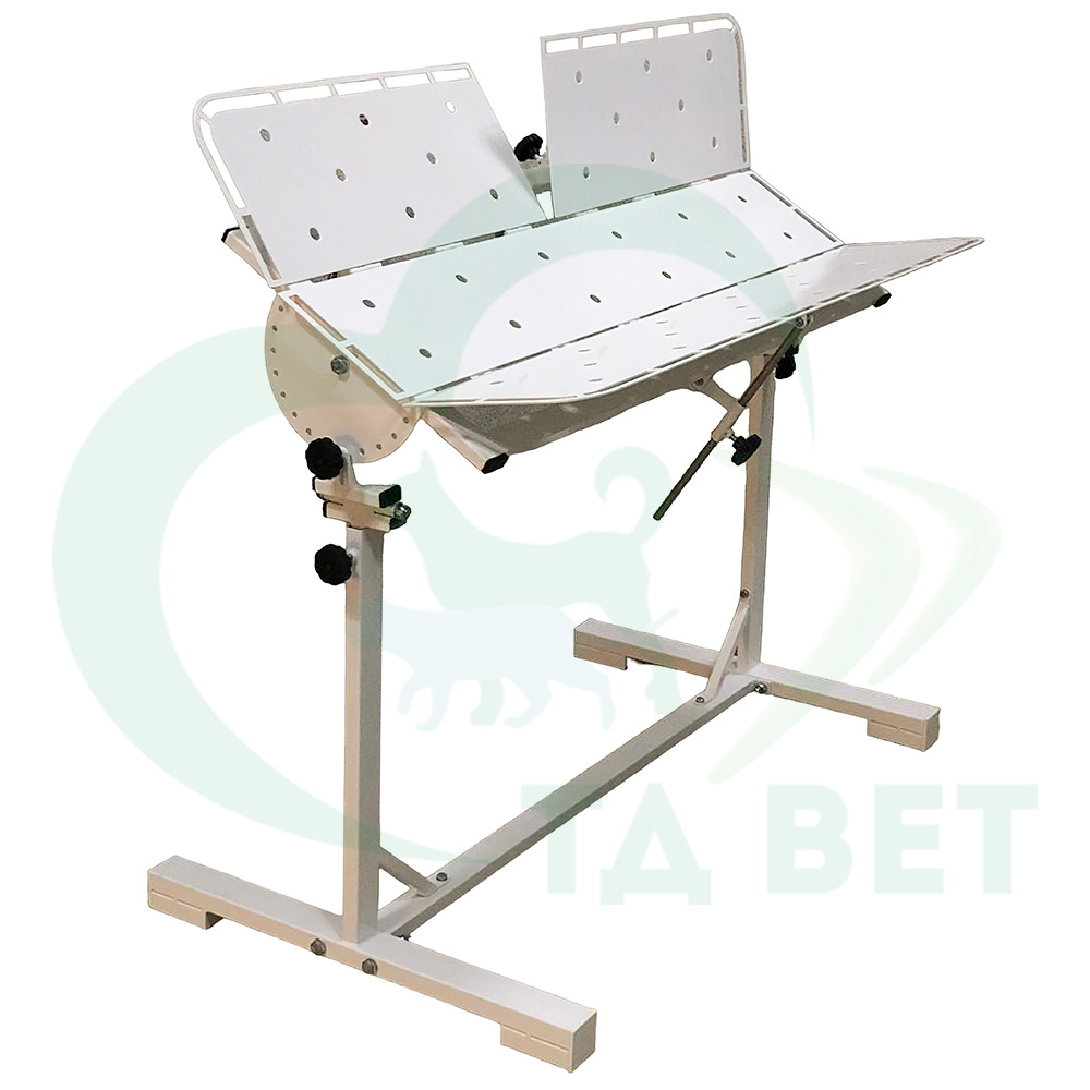 Кроме отверстий, вокруг столешницы имеется ободок для фиксации конечностей животного во время операций с помощью веревок.