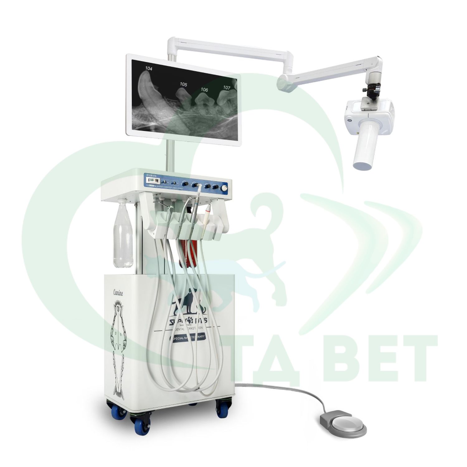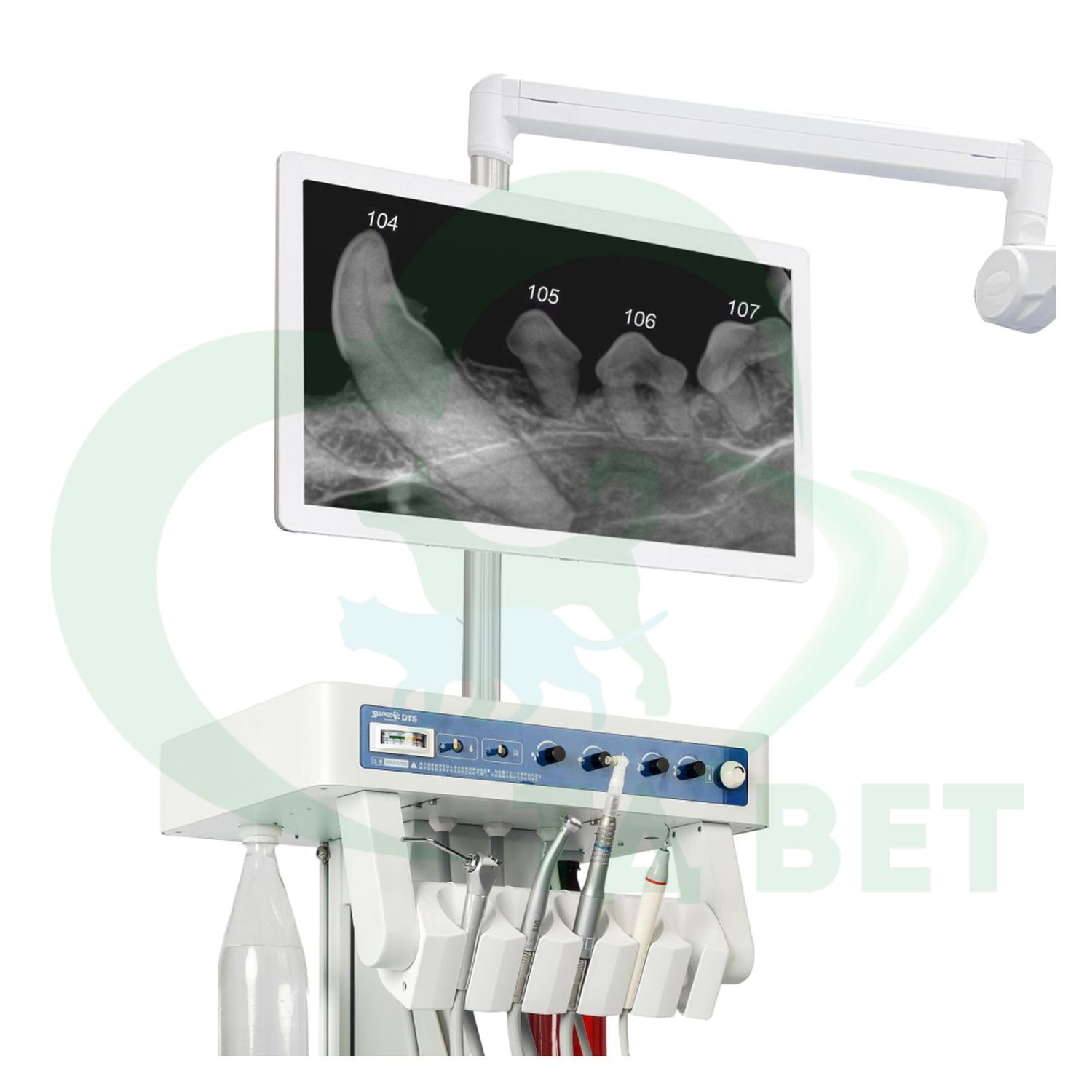 Ветеринарная стоматологическая установка SuperVet Exp – ветеринарная стоматологическая передвижная установка, предназначенная для оказания стоматологических услуг, проведения ортодонтических манипуляций, хирургических операций и препарирования твёрдых тканей зубов. Совмещает в себе стоматологический блок с низким уровнем шума и рентгеновский аппарат, с возможностью моментального выведения снимка на экран.