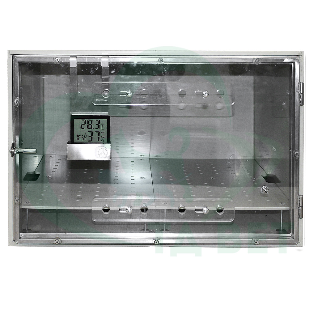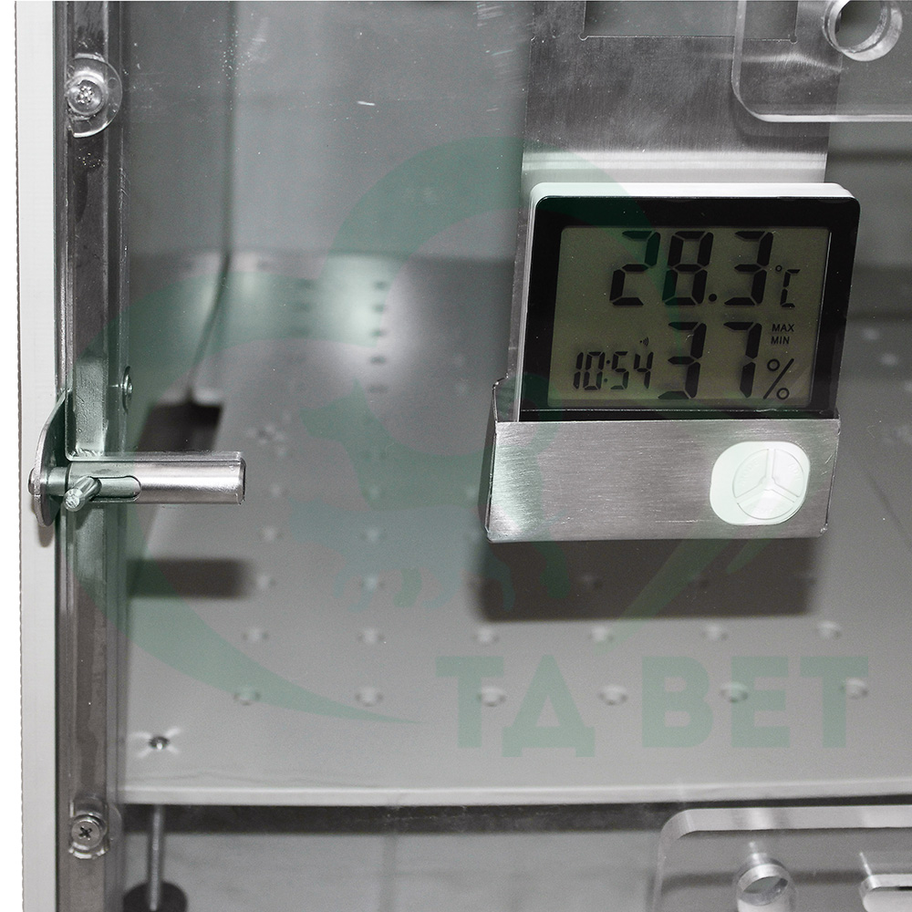 В комплекте цифровой термометр-гигрометр с четким диплеем для мониторинга температуры и влажности внутри камеры.