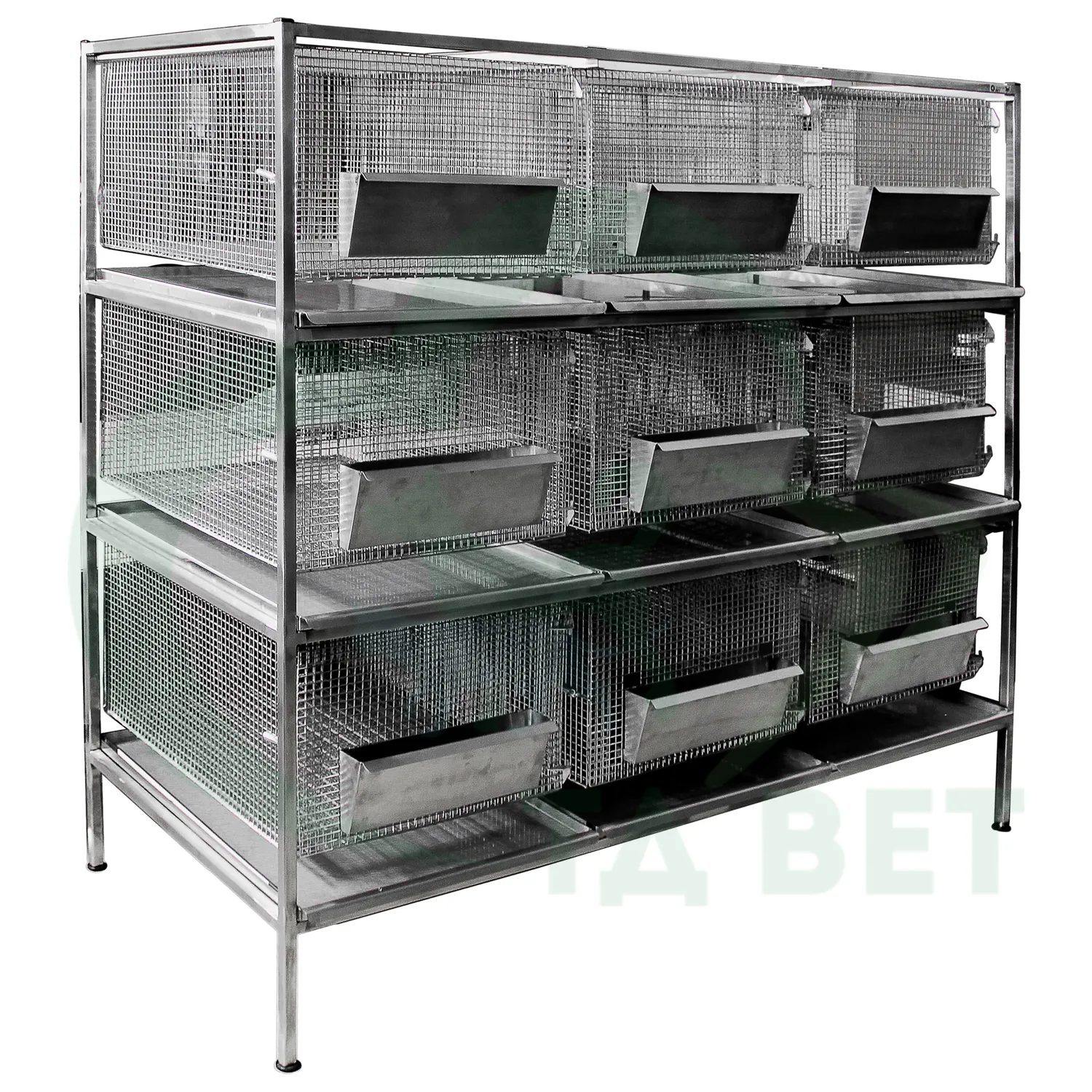 Стеллаж с 9 подвесными клетками из нержавеющей стали для цыплят