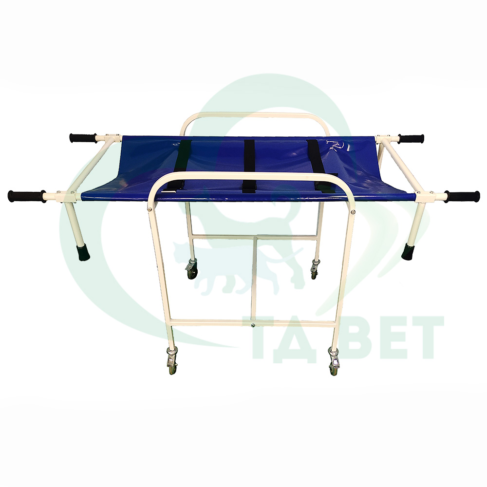 В верхней части тележки находятся ветеринарные носилки, которые легко снимаются и фиксируются обратно. За счет этого, носилки возможно брать с собой на выезд.