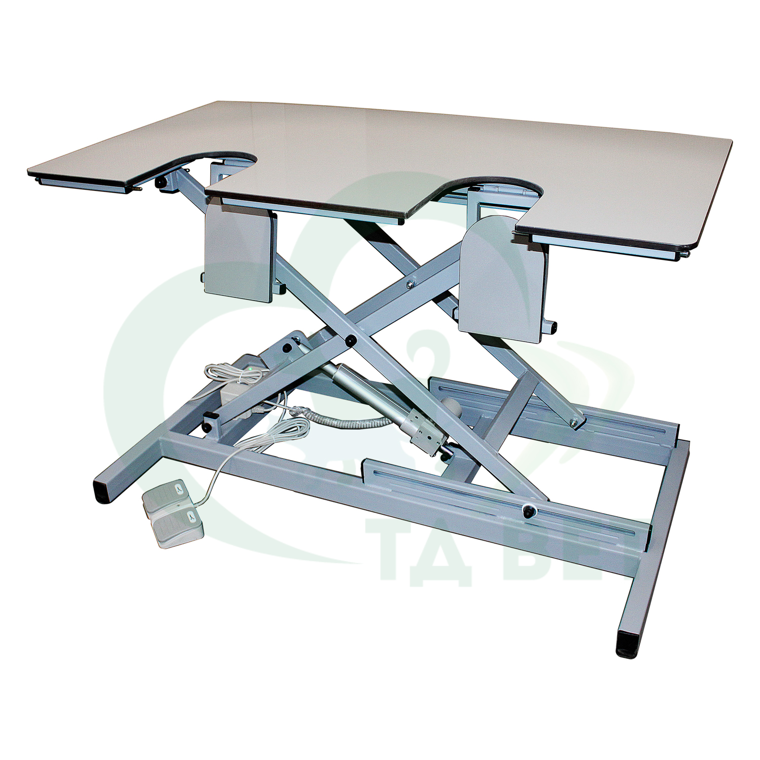 Стол оснащен электроприводом, позволяющим без особых усилий регулировать высоту стола.