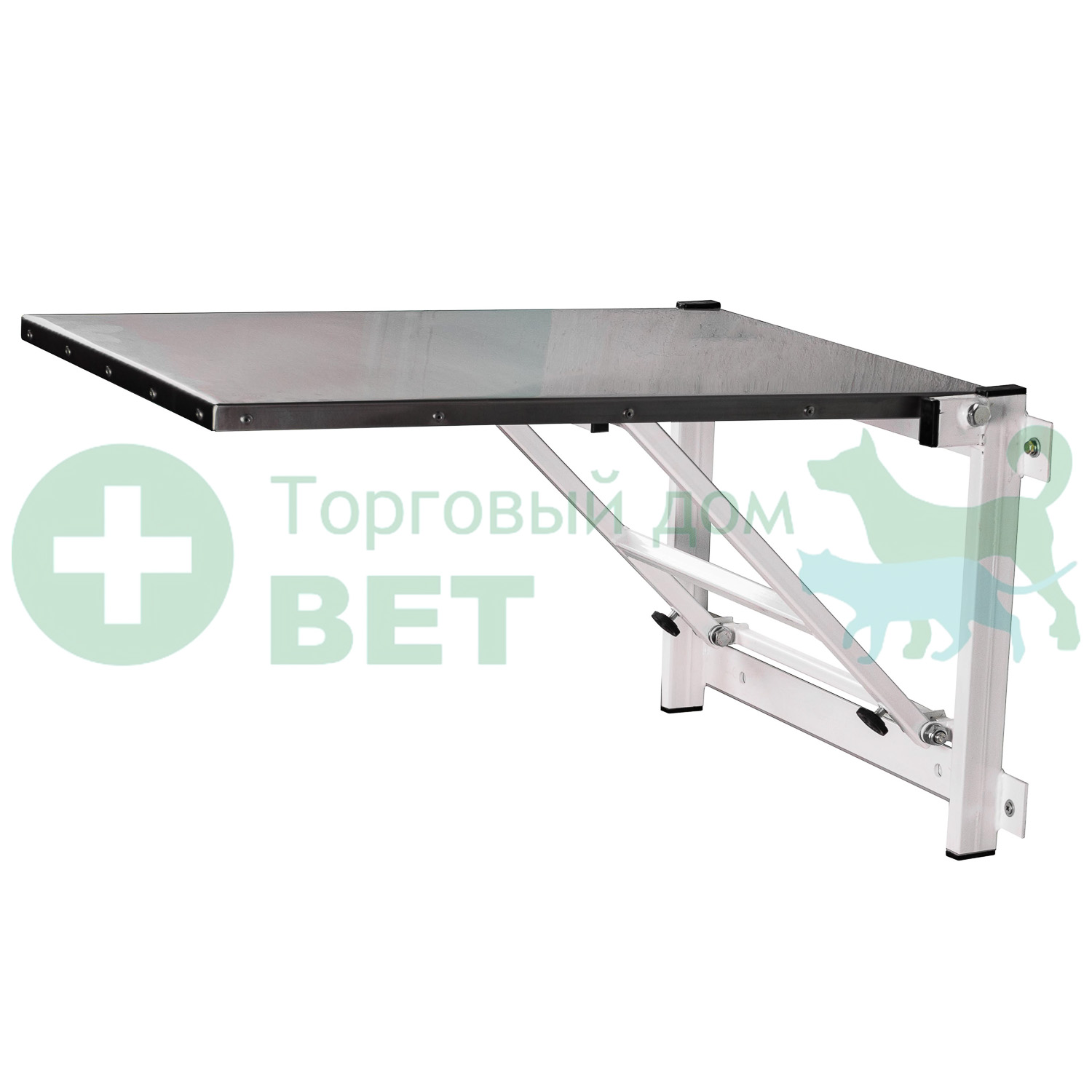 ТД ВЕТ Стол ветеринарный откидной Vetbot-11 с креплением на стену, столешница нерж.сталь, 700х500, (каркас белый)