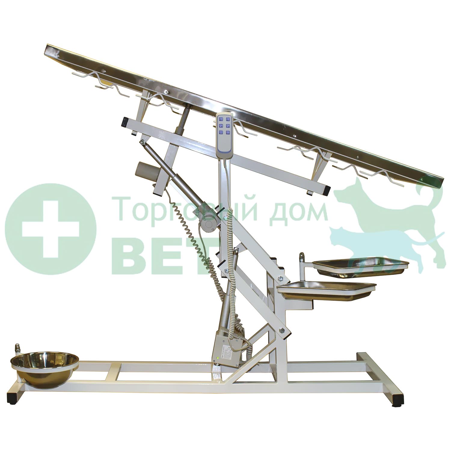 Стол снабжен тремя электроприводами, с помощью которых можно изменять его высоту и наклон столешницы в продольном и поперечном направлении. Регулировка столешницы происходит плавно, без рывков, что позволяет менять угол наклона прямо во время операций. Меняя угол наклона столешницы, можно "заставить" внутренние органы пациента принять то положение, которое удобно хирургу в данный момент операции.