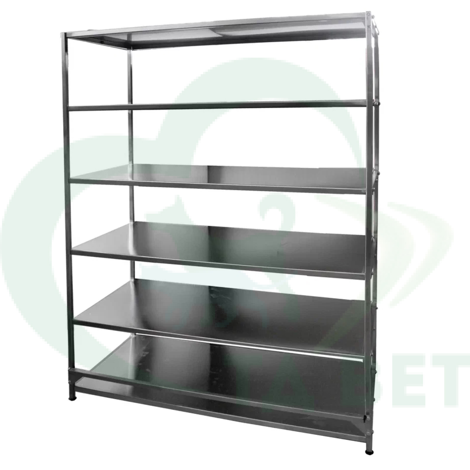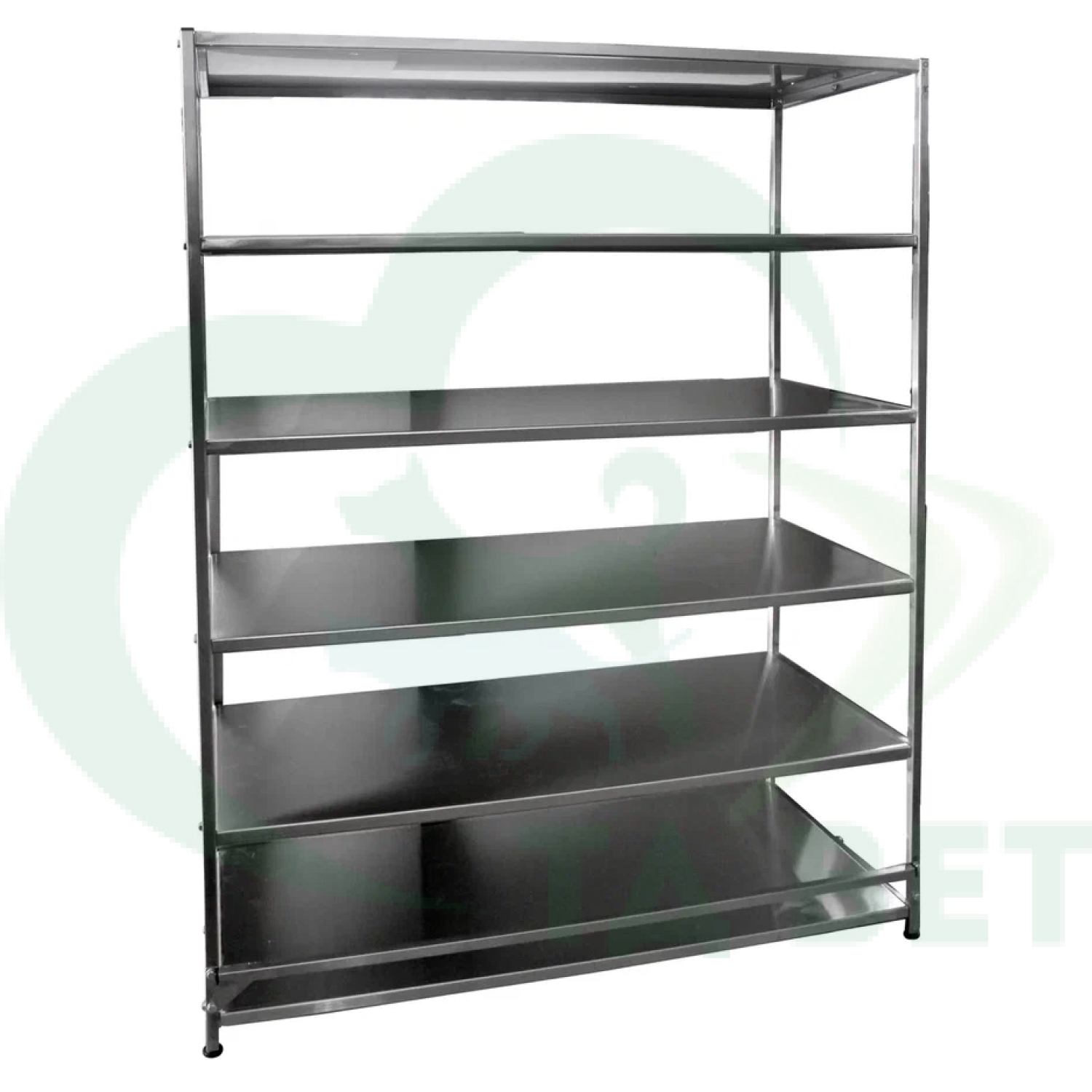 полки стеллажа изготовлены из листа нержавеющей стали марки AISI-304