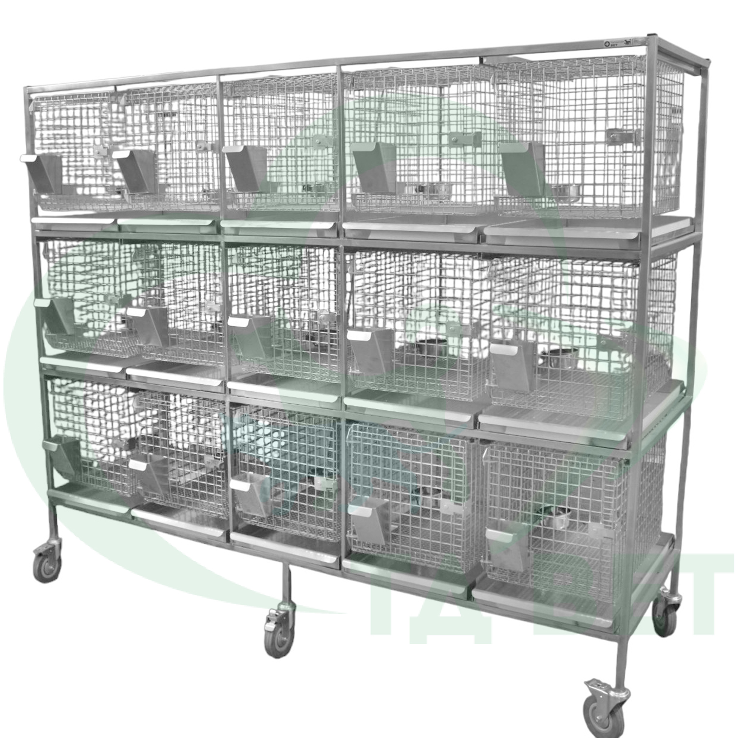Клетки оснащены кормушками и мисками с держателями для поения, пружинными замками, замками защёлками.