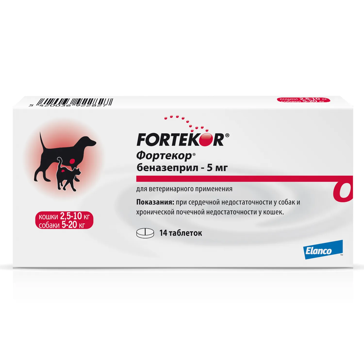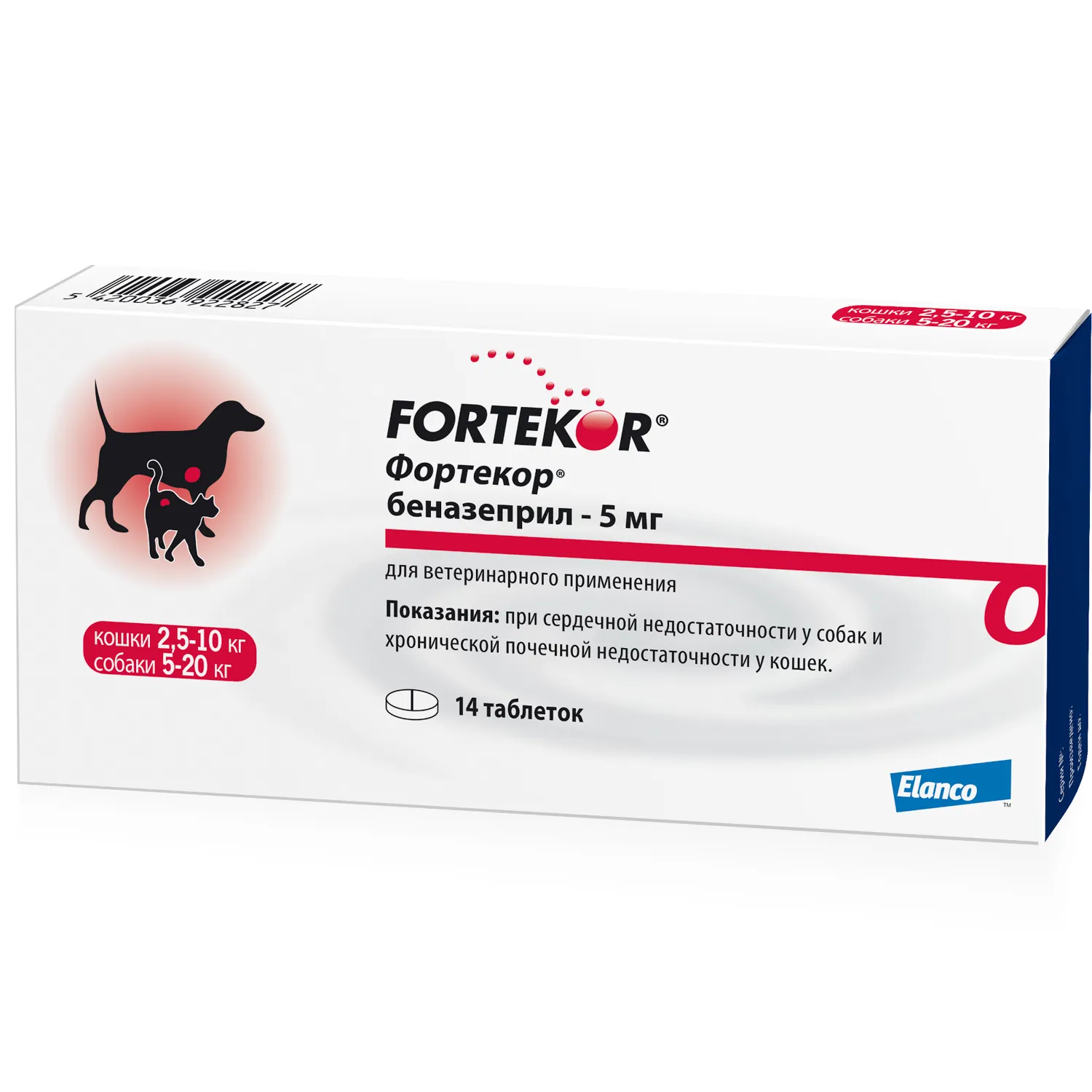 Elanco Фортекор 5 мг - препарат, помогающий улучшать качество жизни собак с сердечной недостаточностью и кошек с хронической почечной недостаточностью.