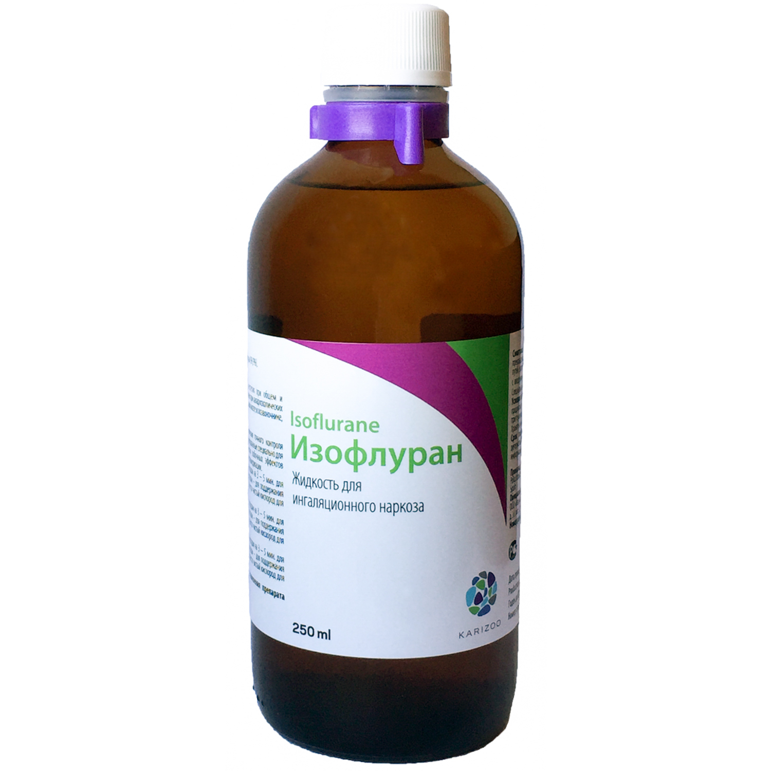 Изофлуран 250 мл - ингаляционный анестетик для лошадей, собак и кошек при лапароскопических и торокоскопических операциях, операциях на головном мозге и позвоночнике, в травматологии и акушерстве.