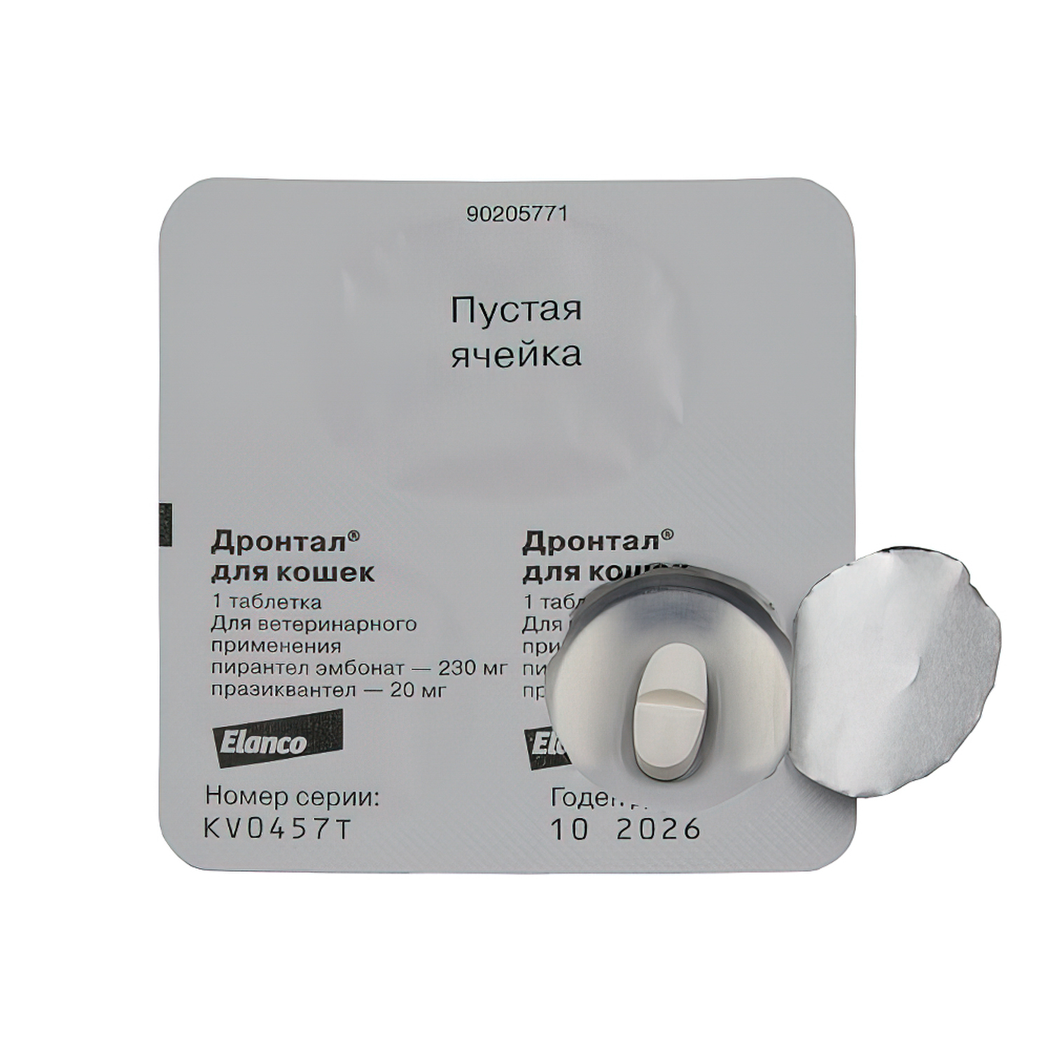 Дронтал относится к фармакотерапевтической группе антигельминтные средства в комбинациях. Дронтал обладает широким спектром антигельминтного действия в отношении круглых и ленточных гельминтов, паразитирующих у кошек, включая Toxocara cati, Toxascarisleonina, Ancylostoma tubaeforme, Ancylostoma braziliense, Echinococcus multilocularis, Dipylidium caninum, Taenia spp., Mesocestoides spp.