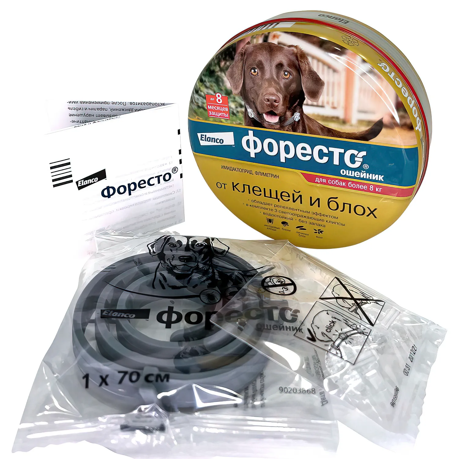 Ошейник Форесто – продукт, помогающий защитить вашу собаку от укусов клещей и блох на 8 месяцев! Носить ошейник рекомендовано постоянно.