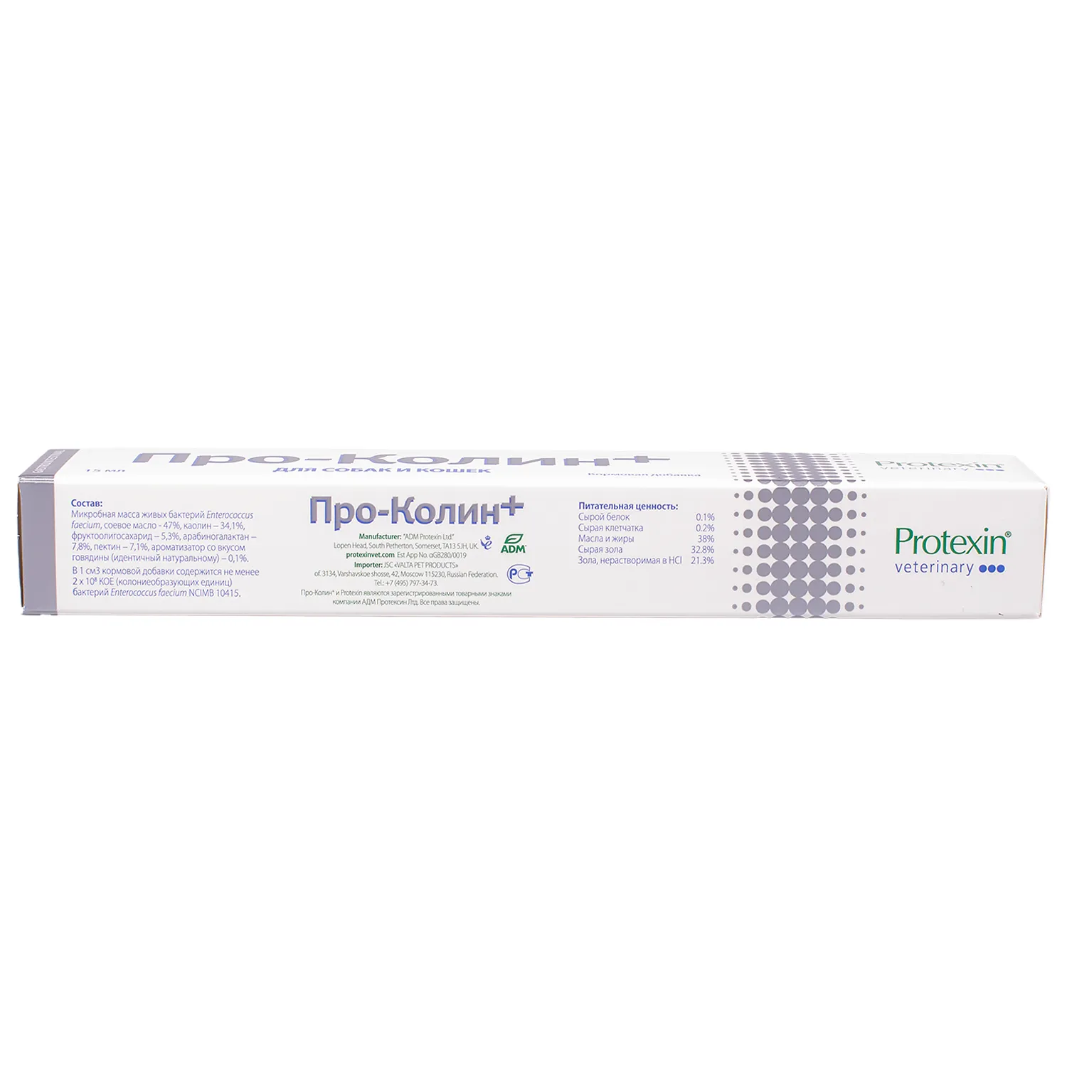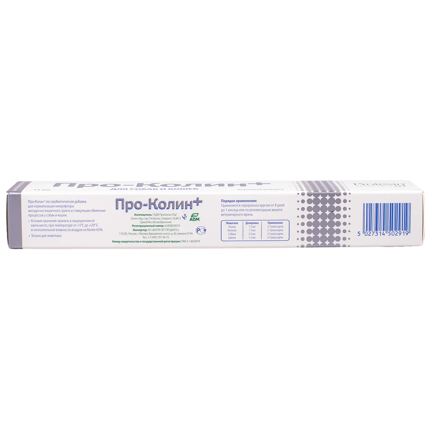 Про-Колин+® – пробиотическая кормовая добавка для нормализации микрофлоры желудочно-кишечного тракта и стимуляции обменных процессов у собак и кошек.