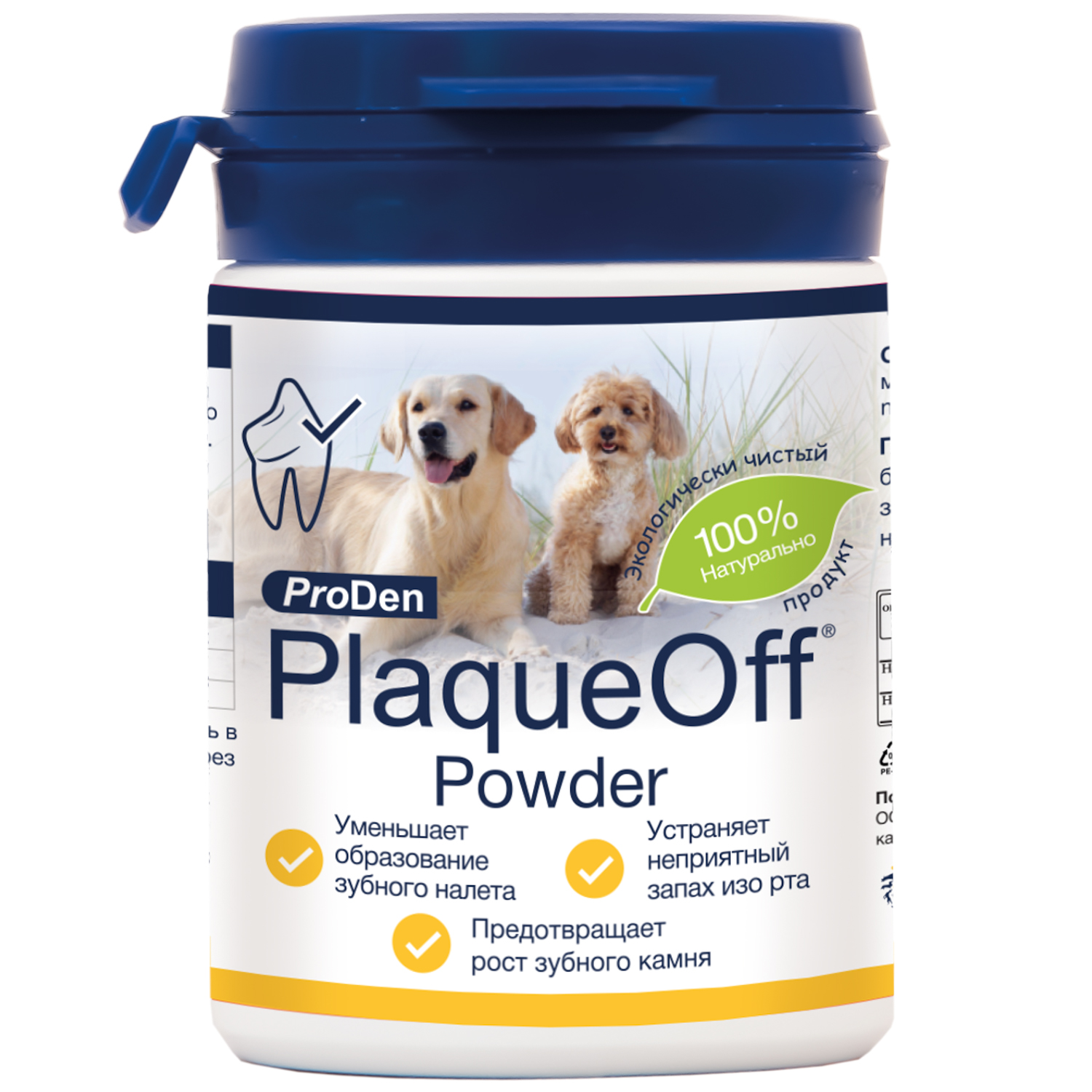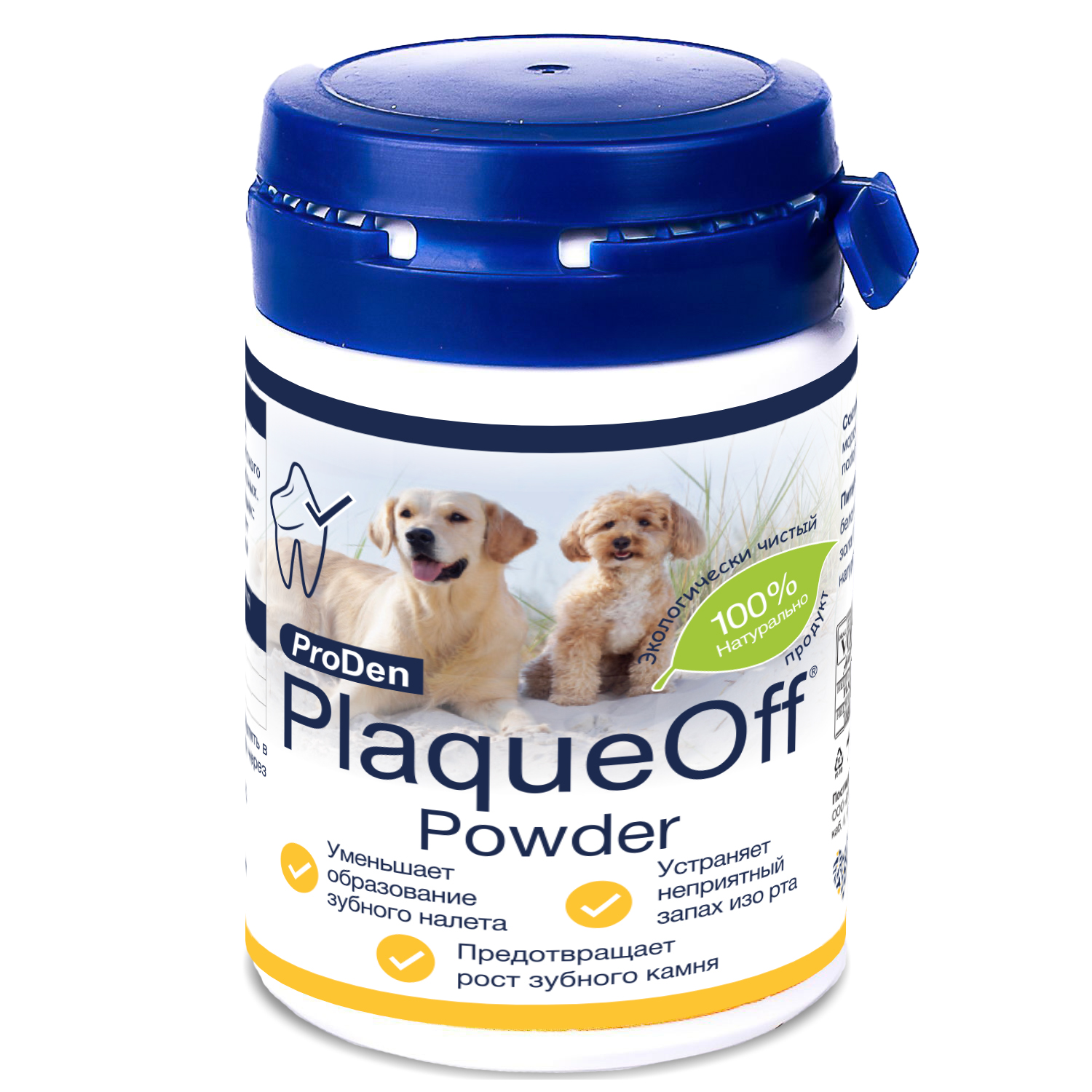 Постоянное использование ProDen PlaqueOff® Powder профилактирует образование зубного налета, камня и неприятного запаха изо рта у собак и кошек.