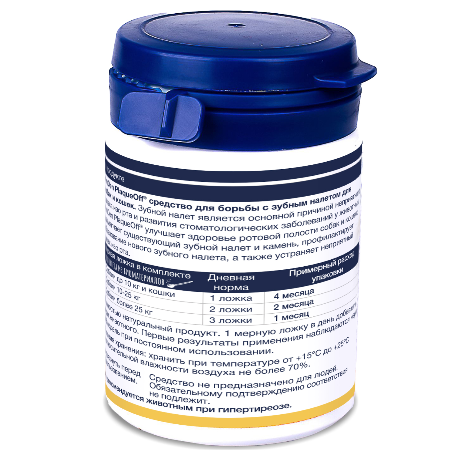 Добавляйте ProDen PlaqueOff® Powder в сухой или вляжный корм питомца один раз в день. К каждой упаковке прилагается мерная ложечка.